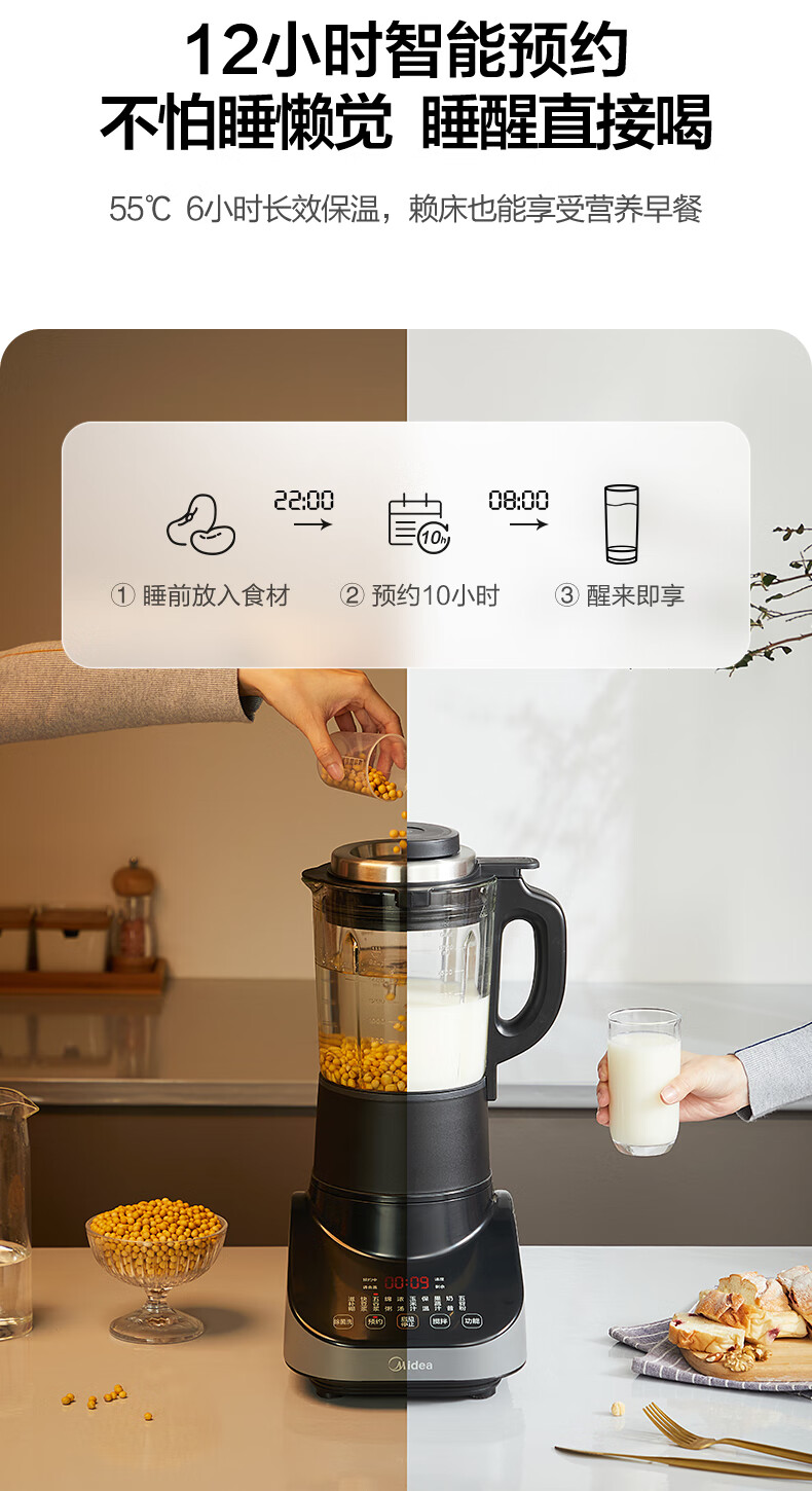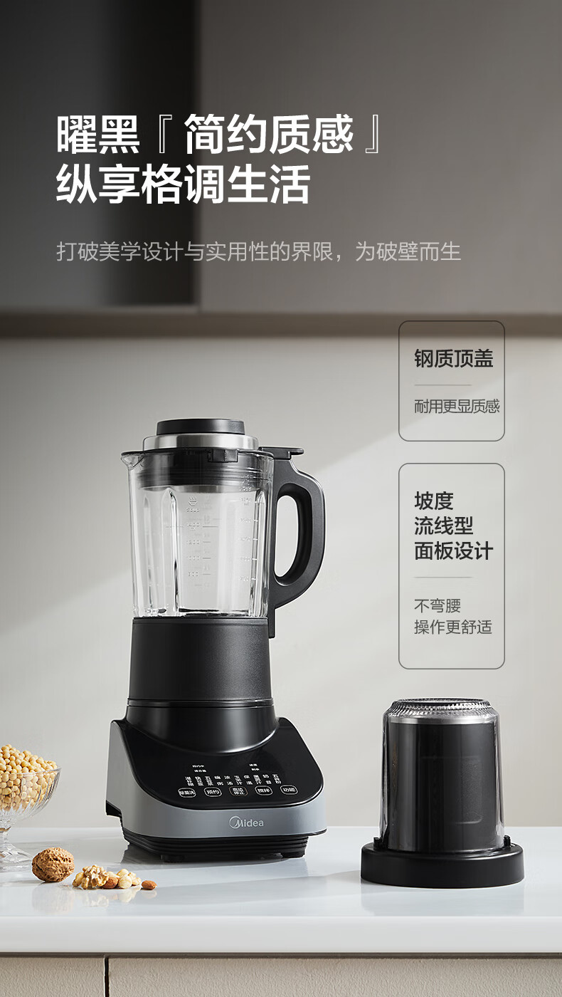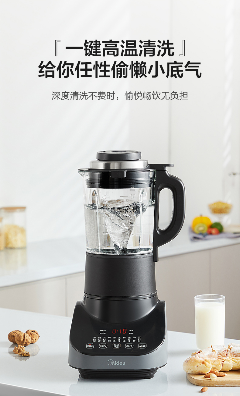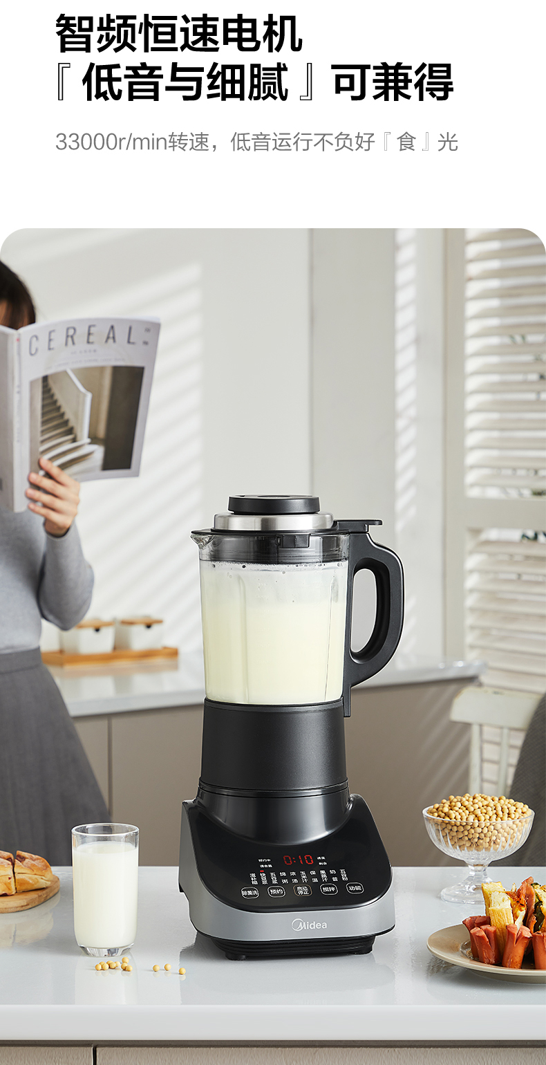 美的(Midea) 安睡破壁机家用轻音榨汁机绞肉馅机婴儿辅食机智能预约豆浆机MJ-CBL1096 轻音低噪