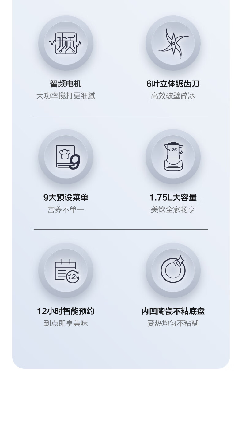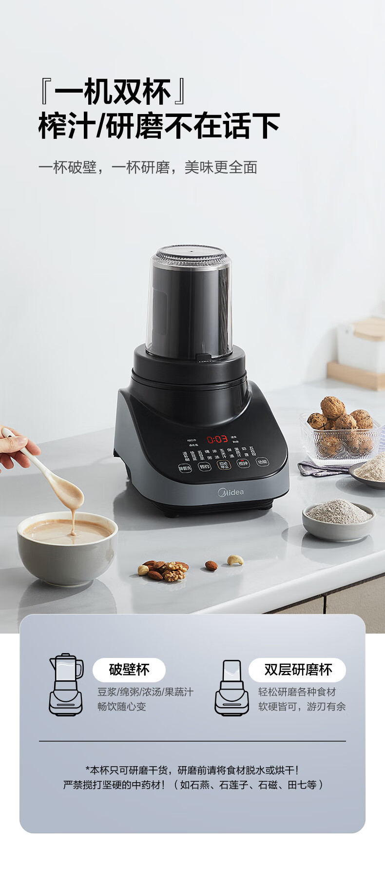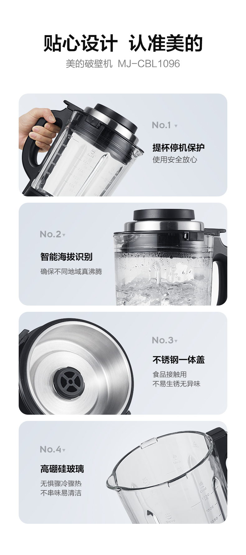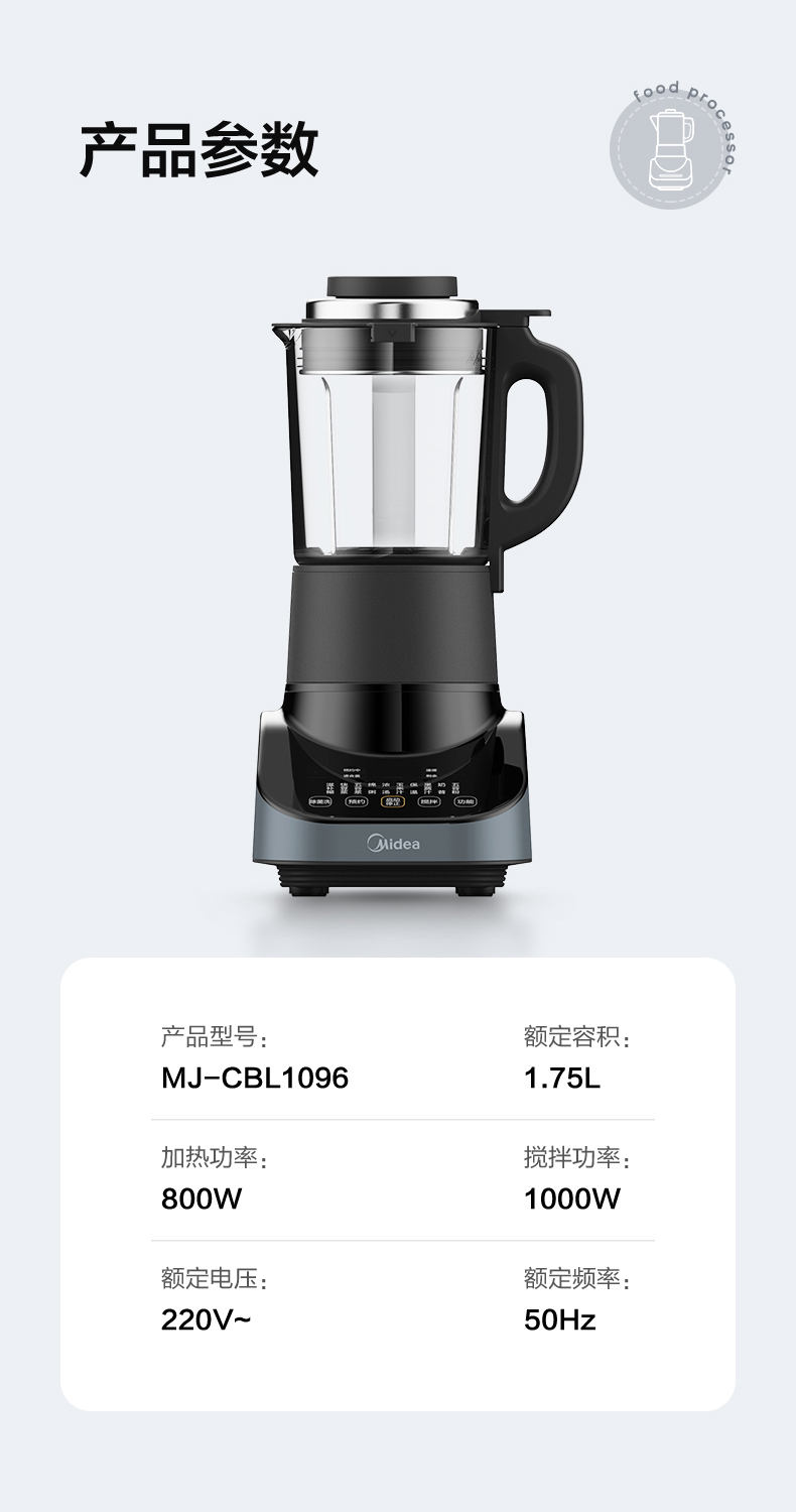 美的(Midea) 安睡破壁机家用轻音榨汁机绞肉馅机婴儿辅食机智能预约豆浆机MJ-CBL1096 轻音低噪