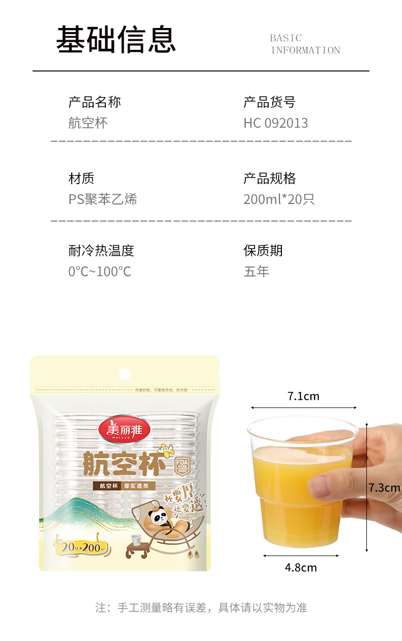【批发】美丽雅大号航空杯茶杯加厚硬质透明太空杯 20只/袋
