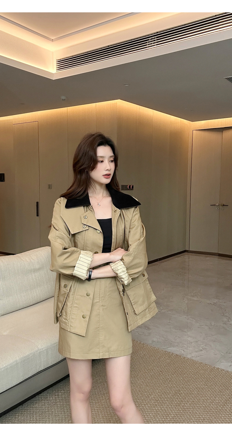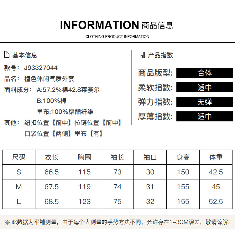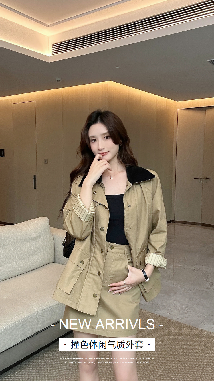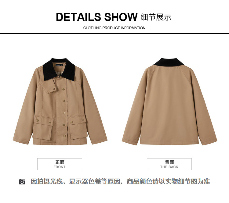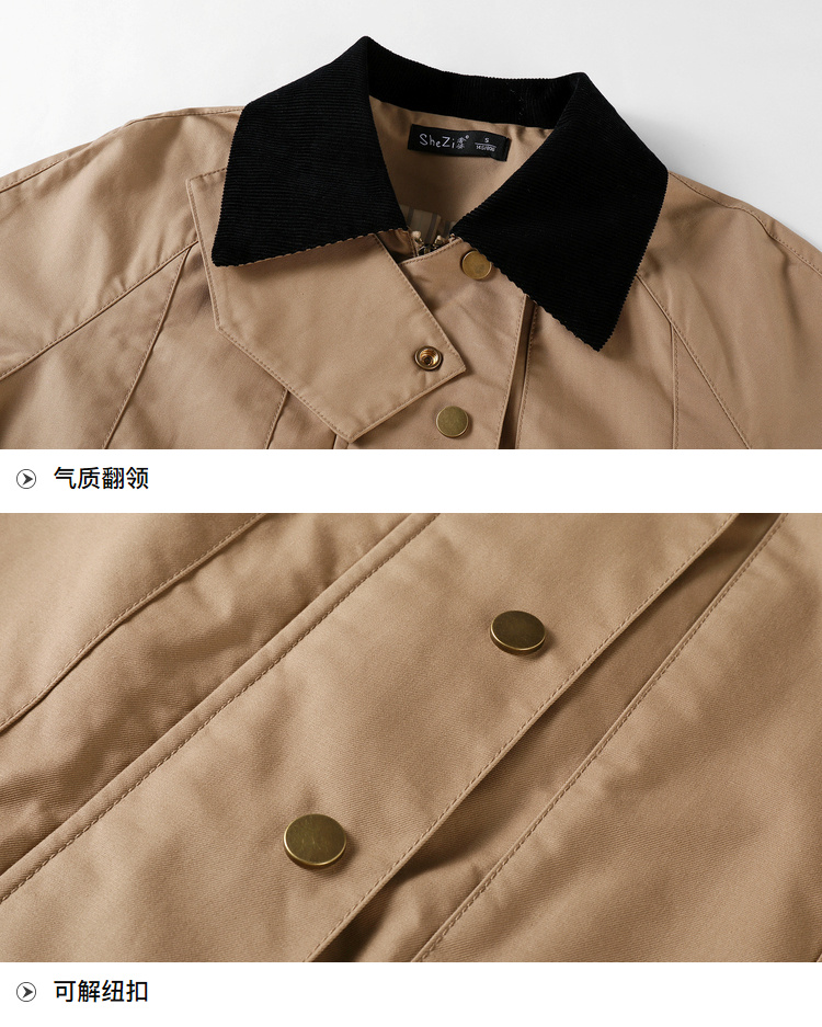 奢姿2025秋季新款气质撞色翻领上衣韩版拼接灯芯绒领休闲外套J93327044