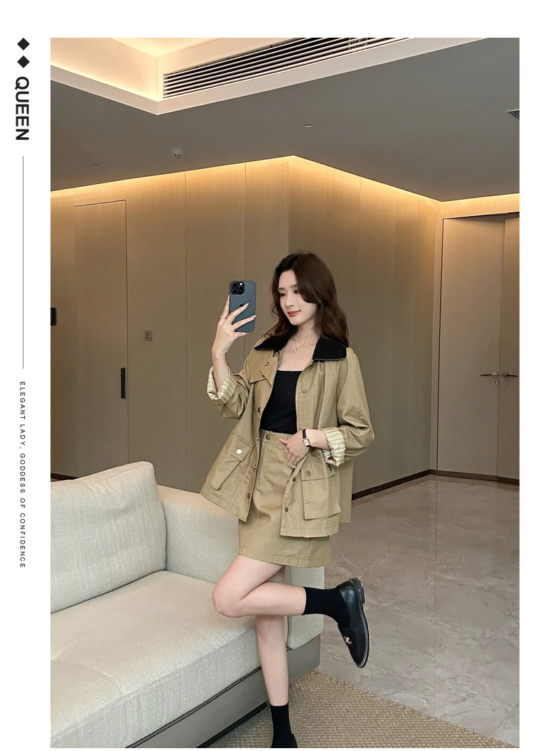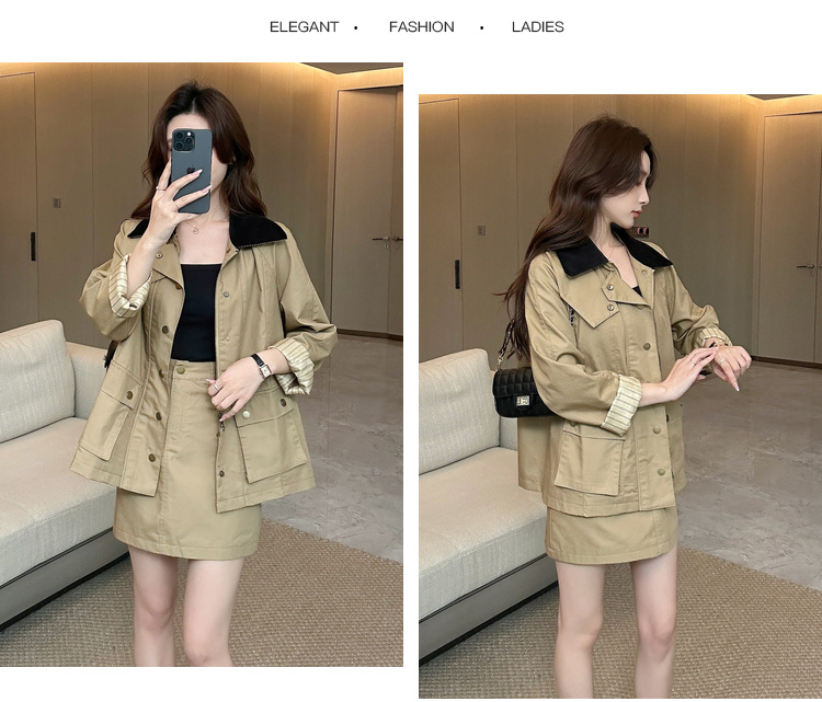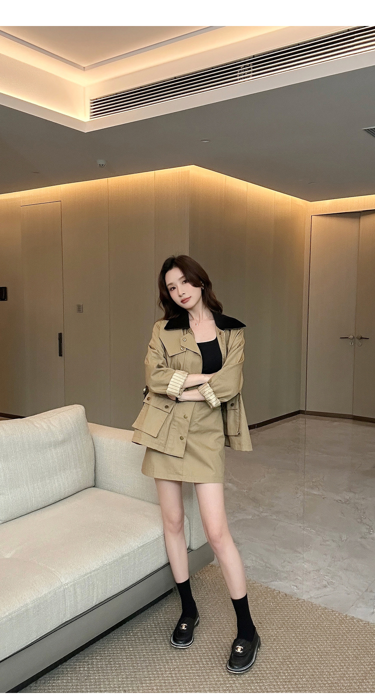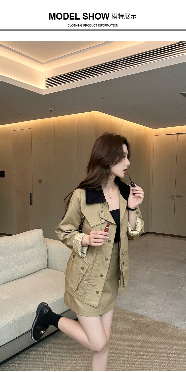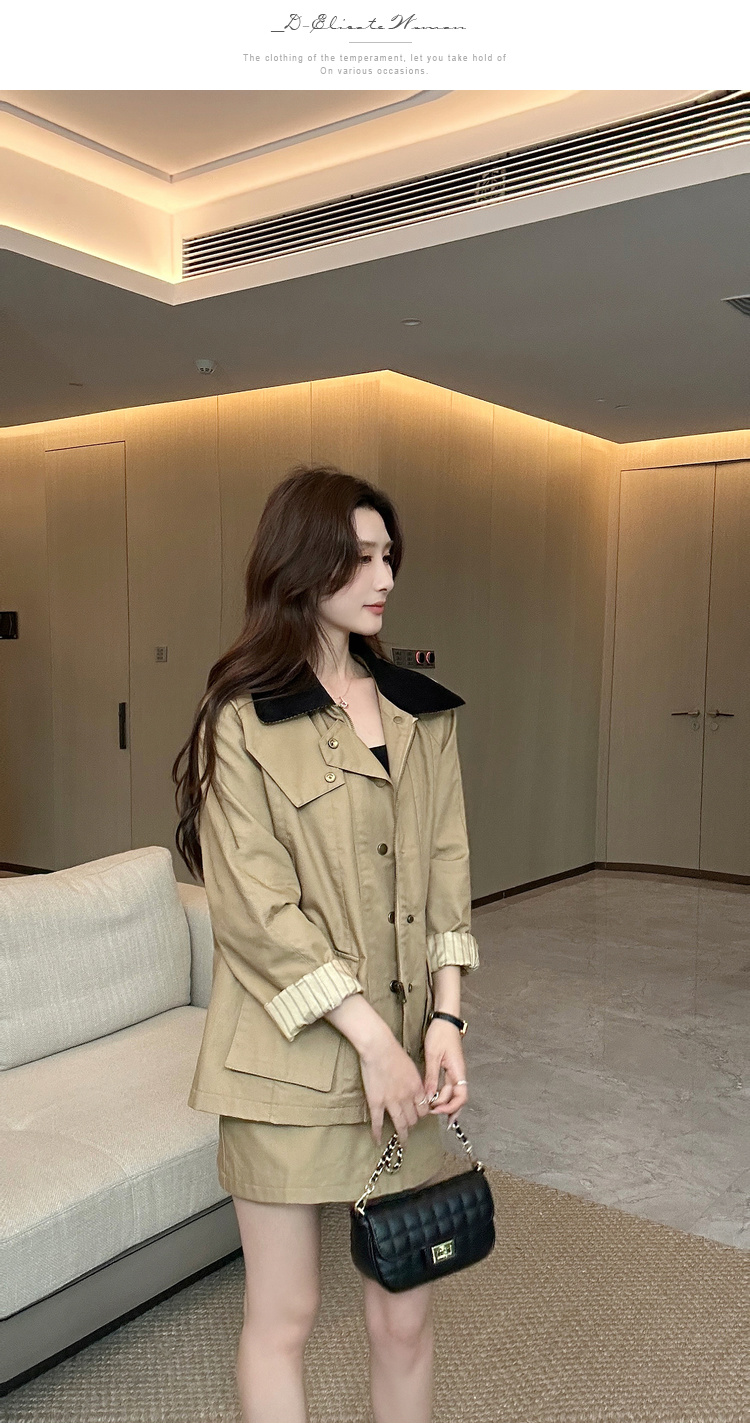 奢姿2025秋季新款气质撞色翻领上衣韩版拼接灯芯绒领休闲外套J93327044