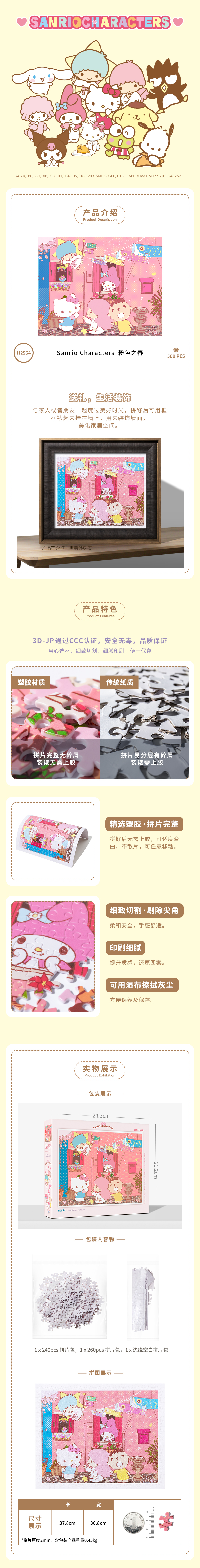 500片 平面拼图 塑料拼图H2564 Sanrio Characters 粉色之春