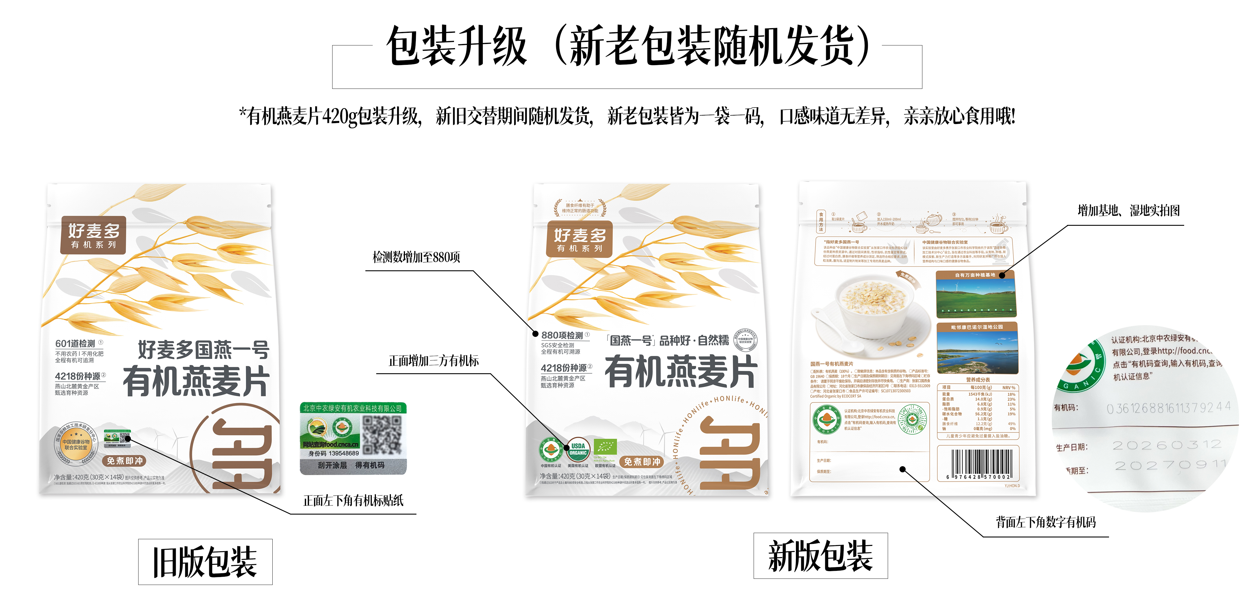 【农科院推荐】好麦多国燕一号有机原味纯燕麦片420g免煮营养早餐