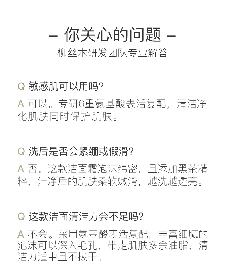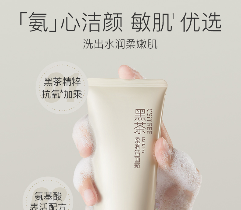 【𝟏𝟎𝟗元任选❸+❶】柳丝木黑茶柔润洗面奶氨基酸深层清洁绵密泡沫敏肌可用