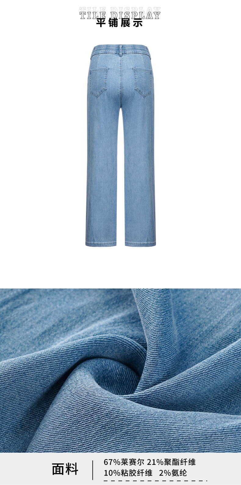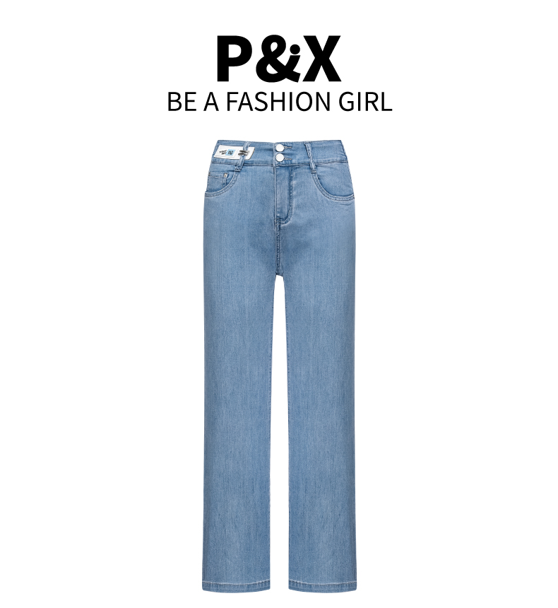 P&X设计师女装 2022夏季新款 牛仔长裤 阔腿裤 蓝色 822210380