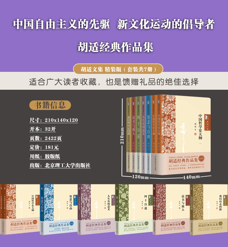 【优惠套装】7册胡适文集全套 读书与做人中国哲学史大纲四十自述容忍与自由胡适的书胡适日记口述自传 文学小说现当代文学书籍 畅销书排行榜