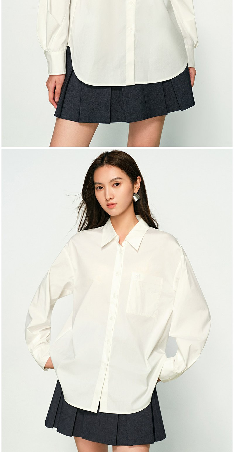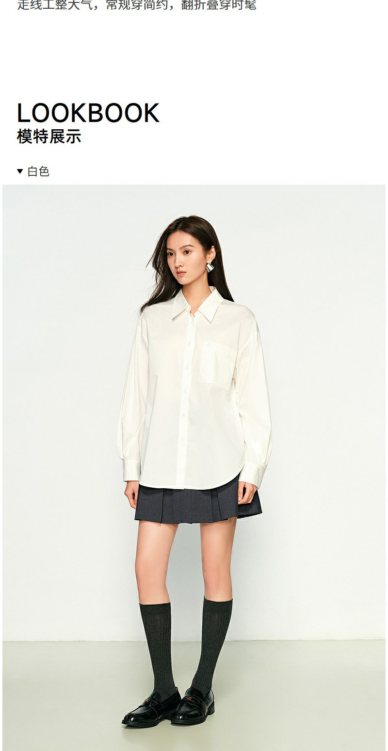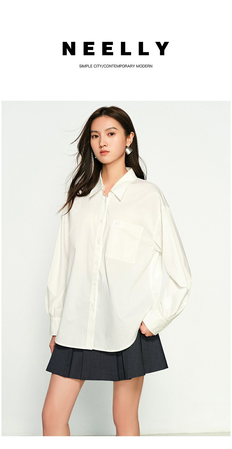 NEELLY纳俪商场同款秋季新款百搭浅色通勤衬衫女经典显瘦简约衬衣N25084B04408