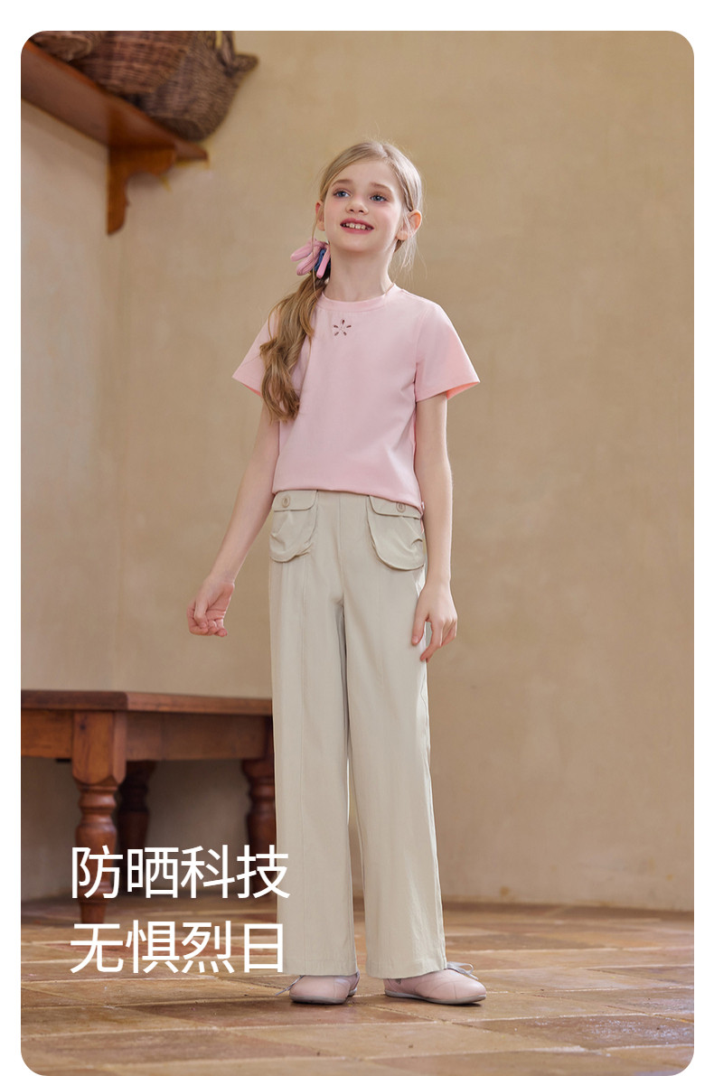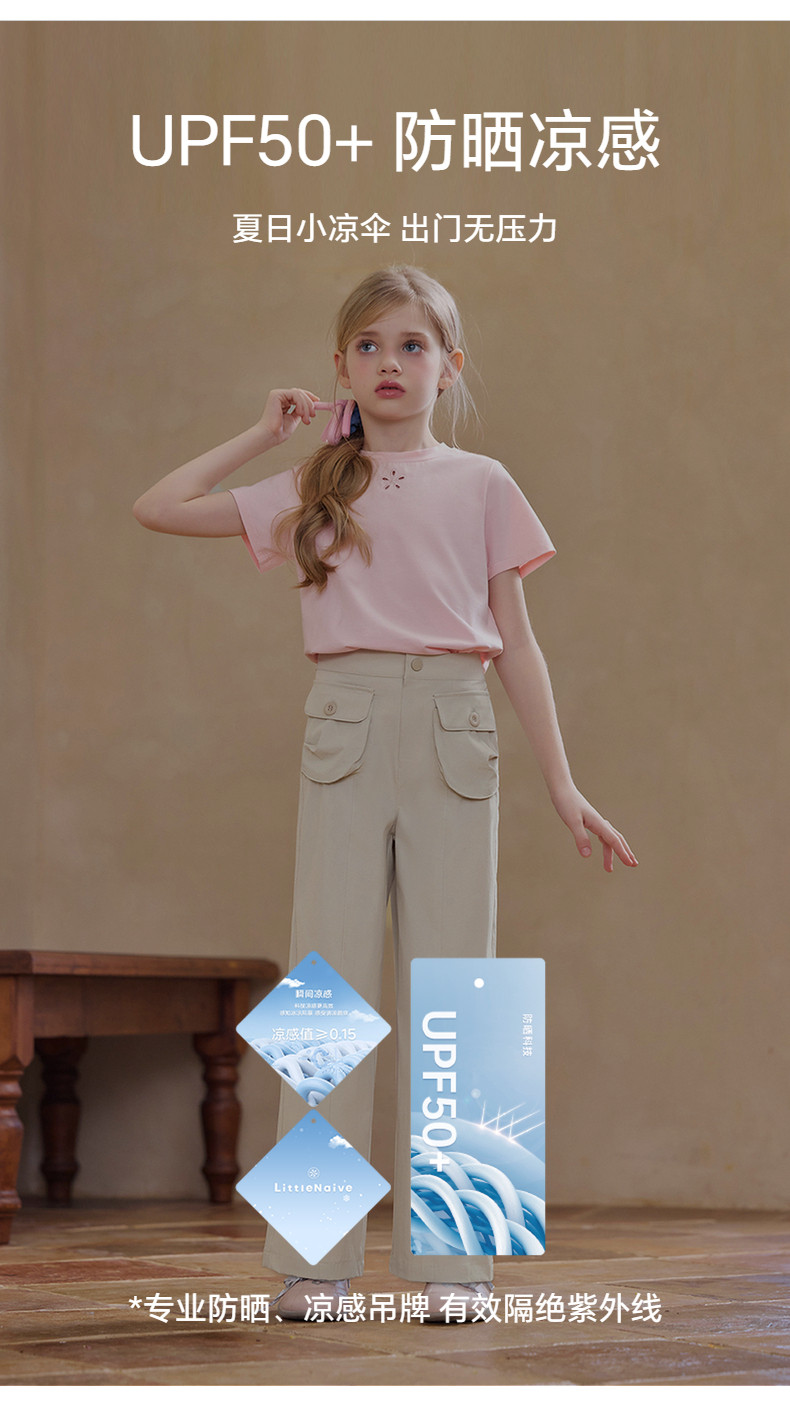 【云优选】Little Naive女童运动工装裤春季新款防晒凉感休闲裤儿童宽松裤