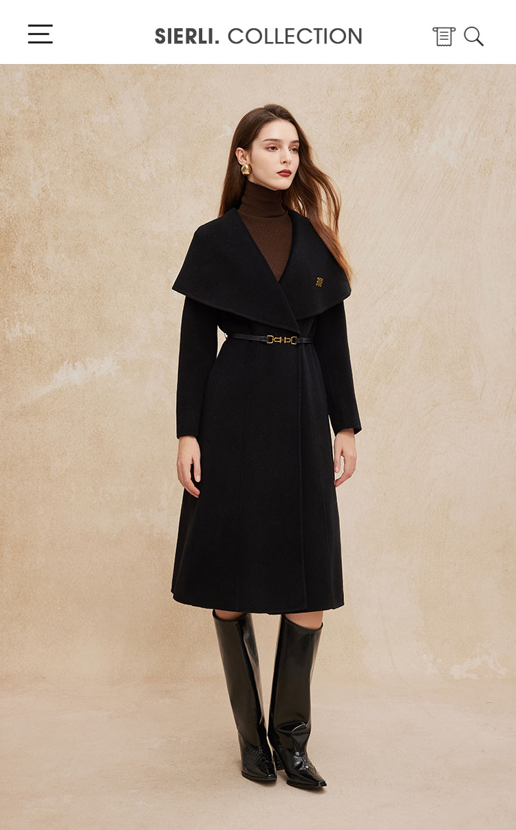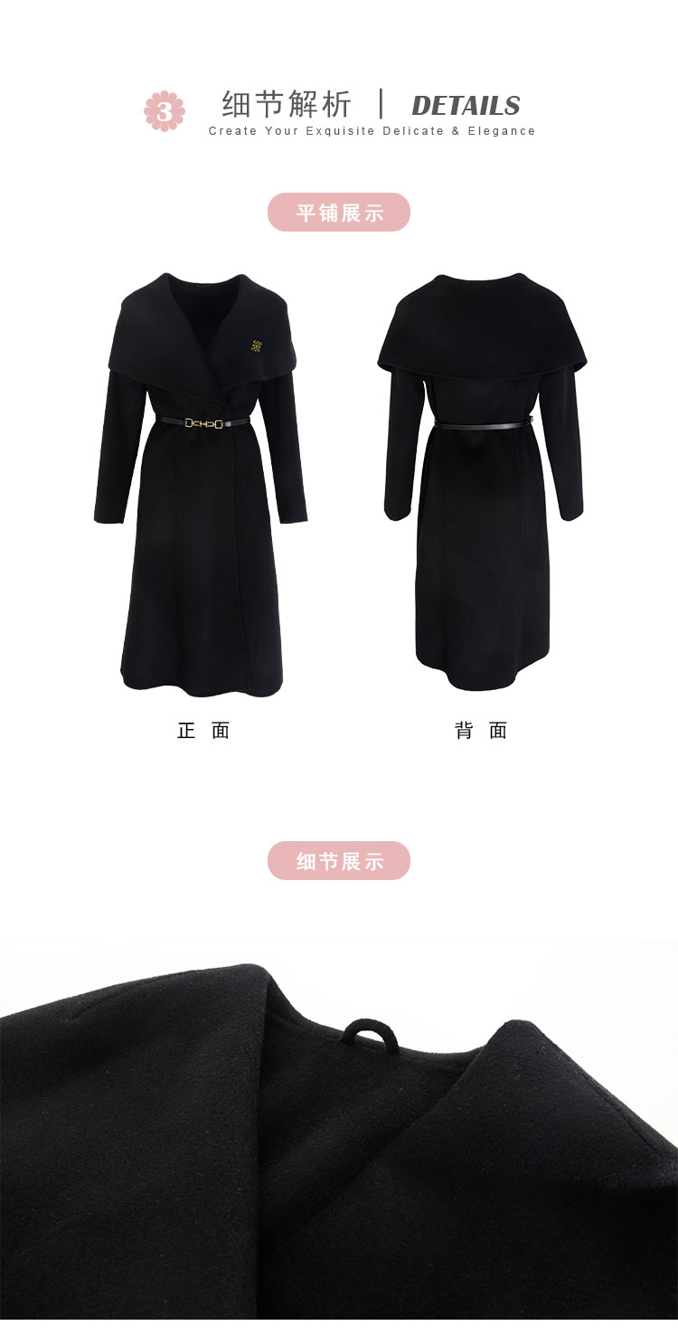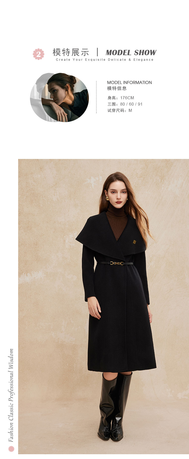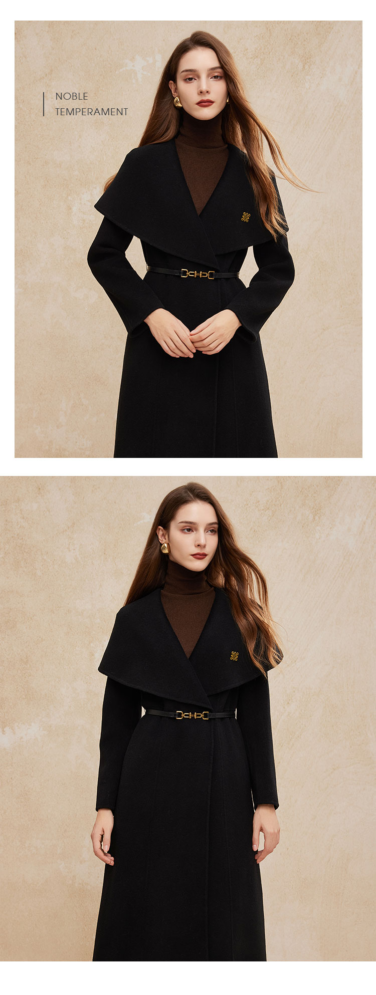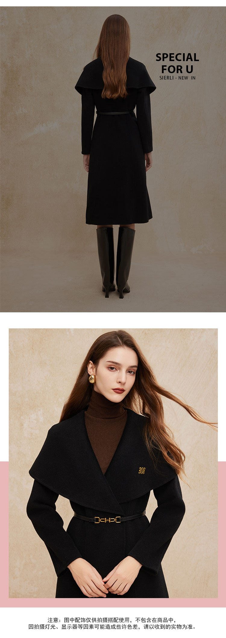 PH965斯尔丽24冬季新款高级感修身斗篷式大翻领配腰带羊毛大衣