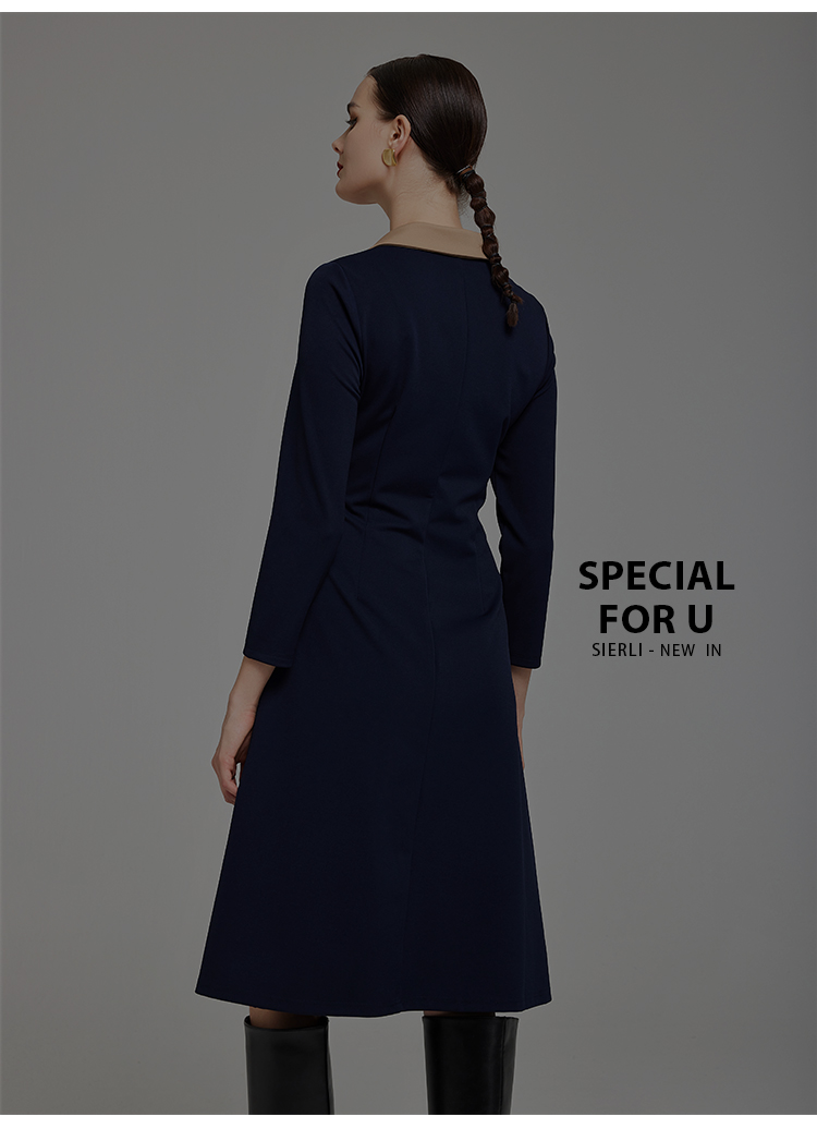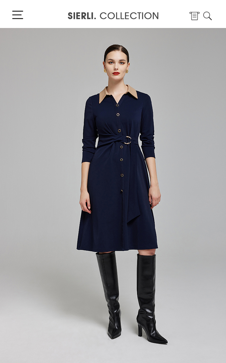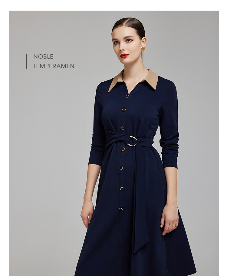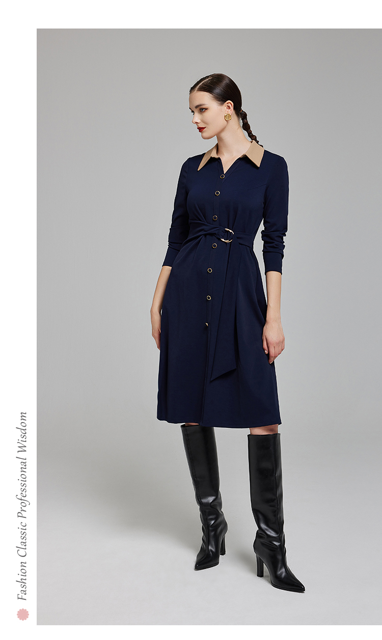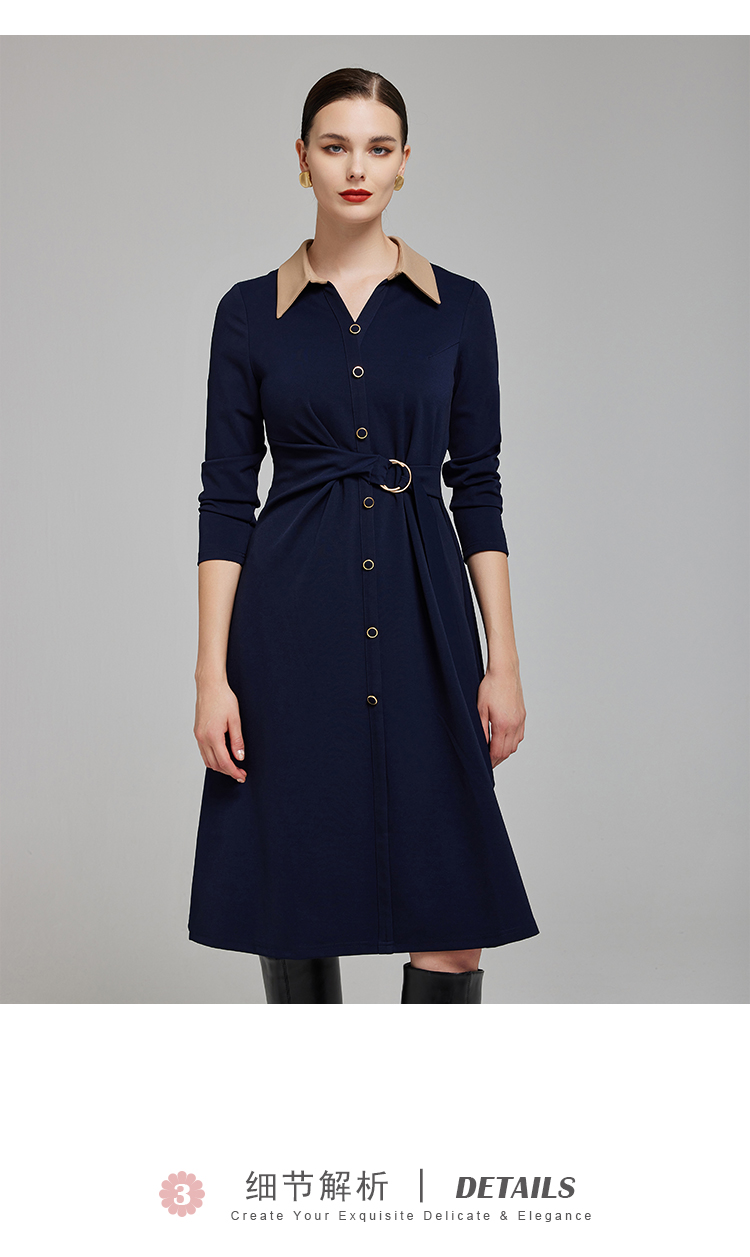 NG855斯尔丽2023秋季新款腰间收褶撞色衬衣领连衣裙