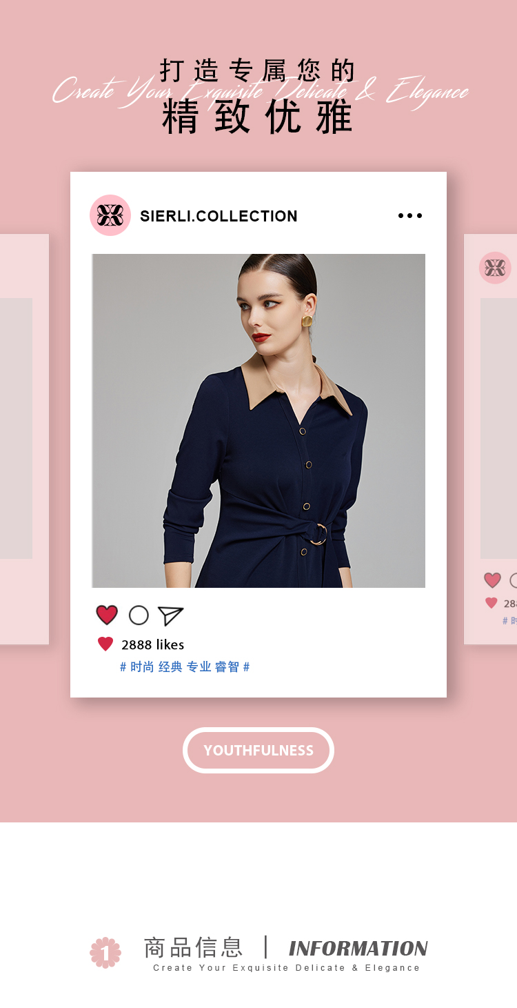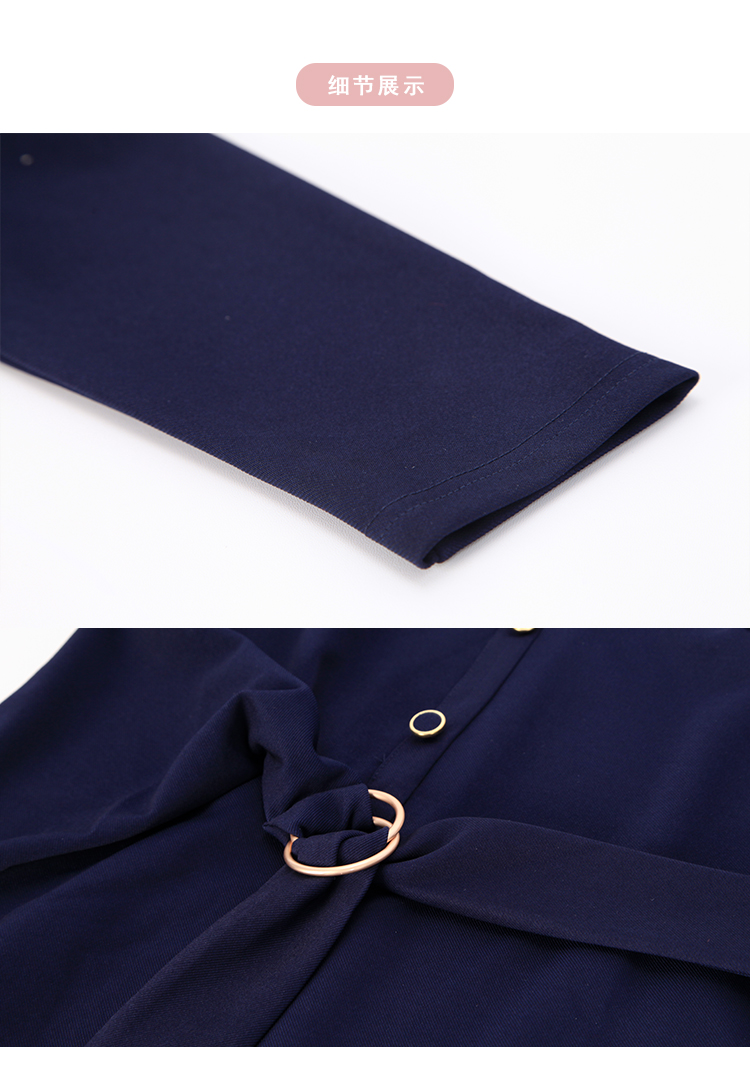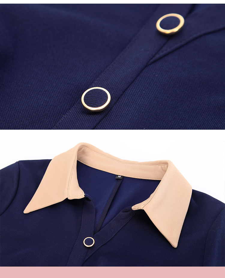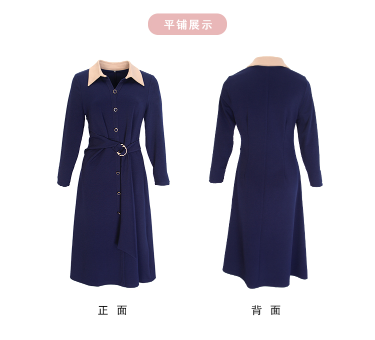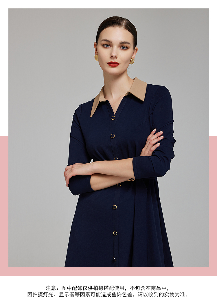 NG855斯尔丽2023秋季新款腰间收褶撞色衬衣领连衣裙