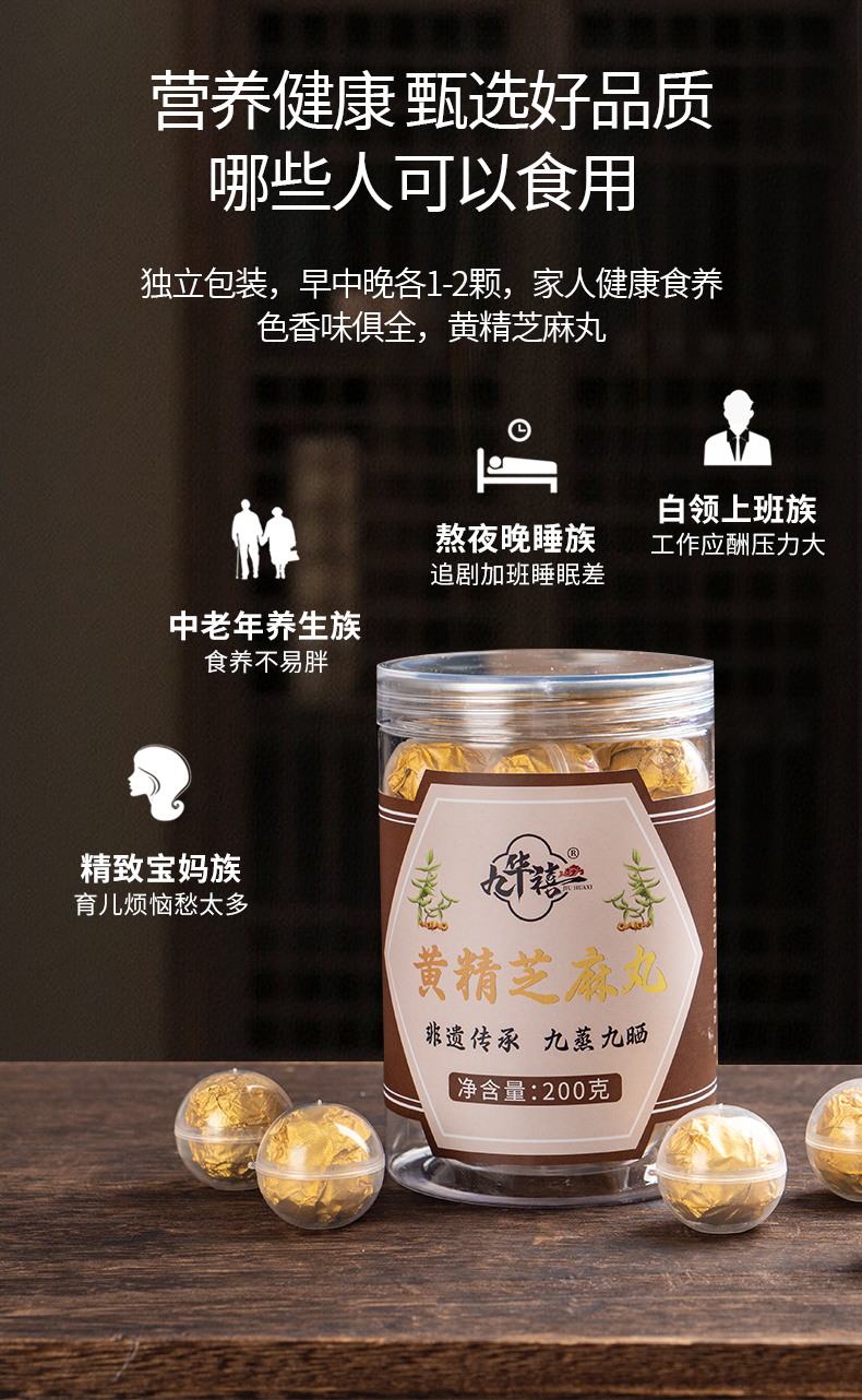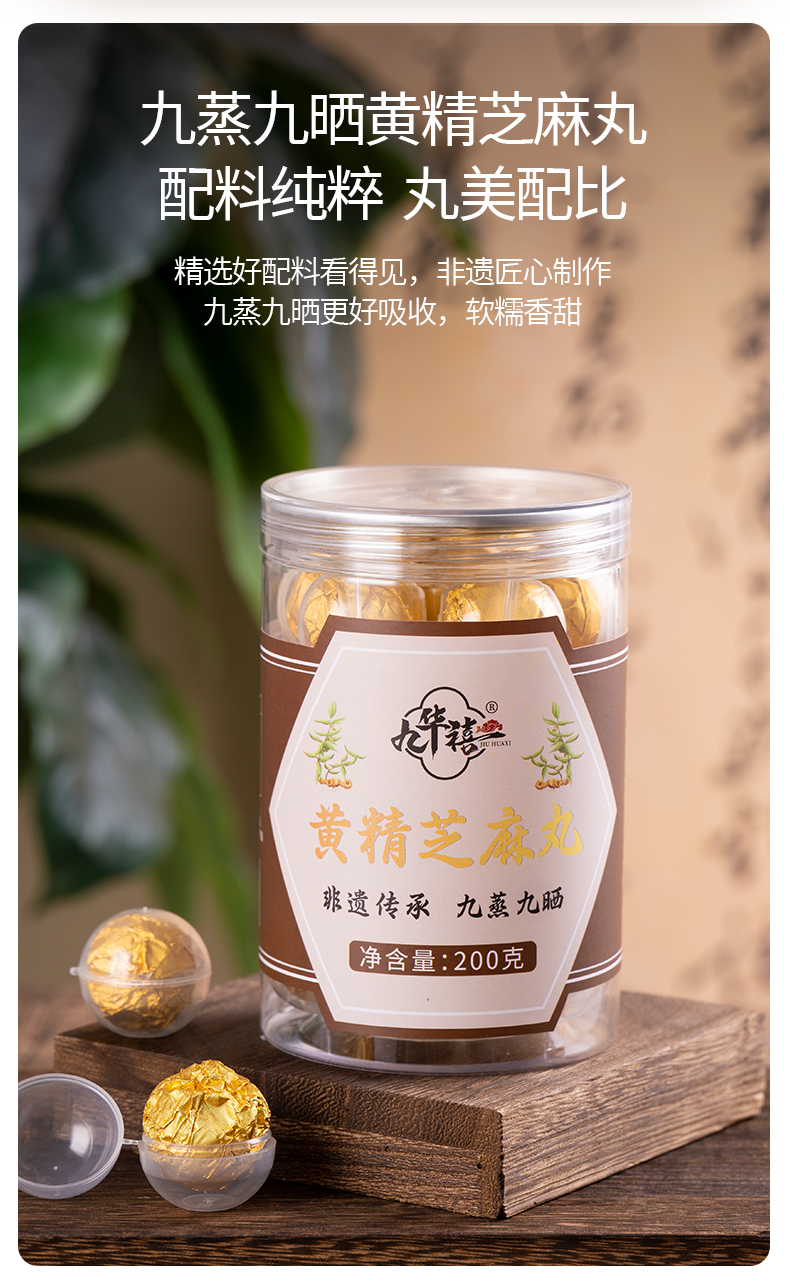 【产品信息】【九华禧】黄精芝麻丸(200g/罐,20颗/罐)