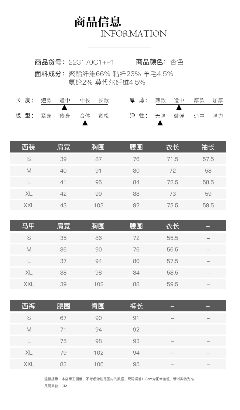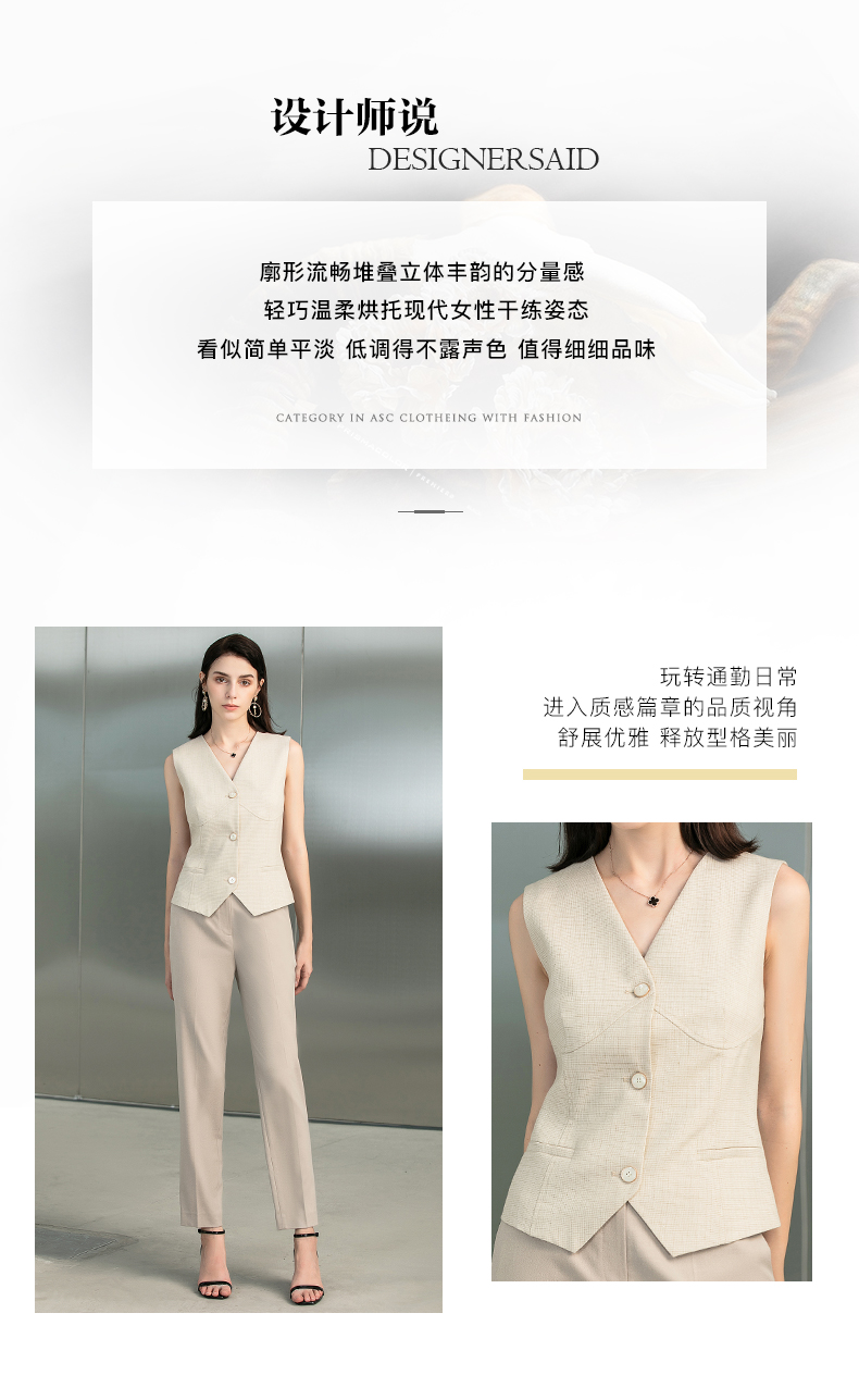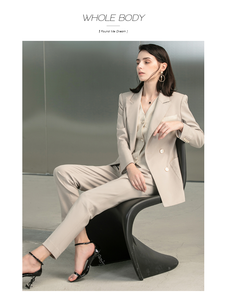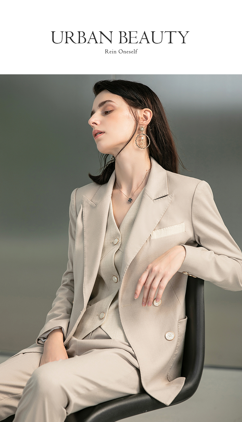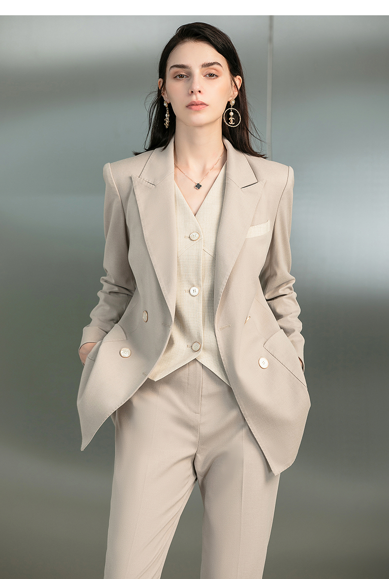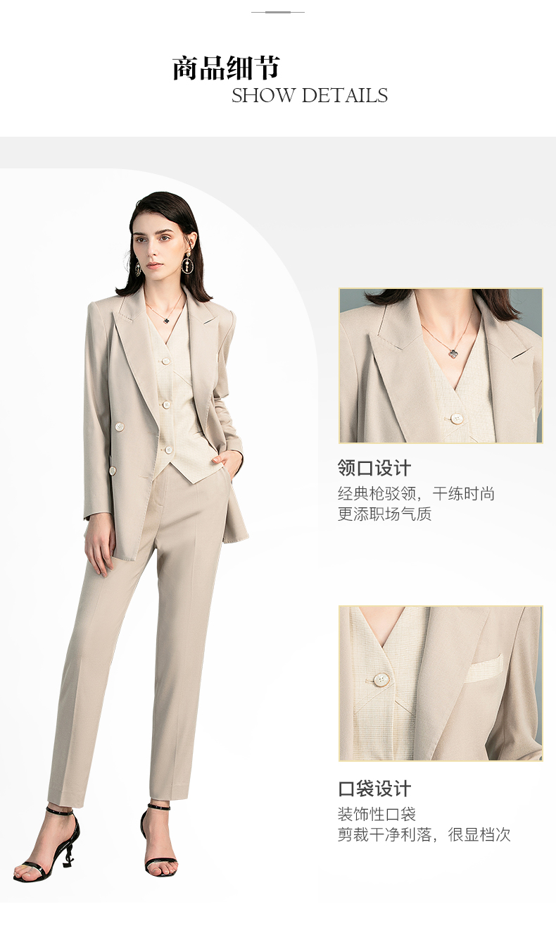 IWY/时尚杏色职业西装套装女气质女神范韩版经理马甲三件套正装223170C1+p1