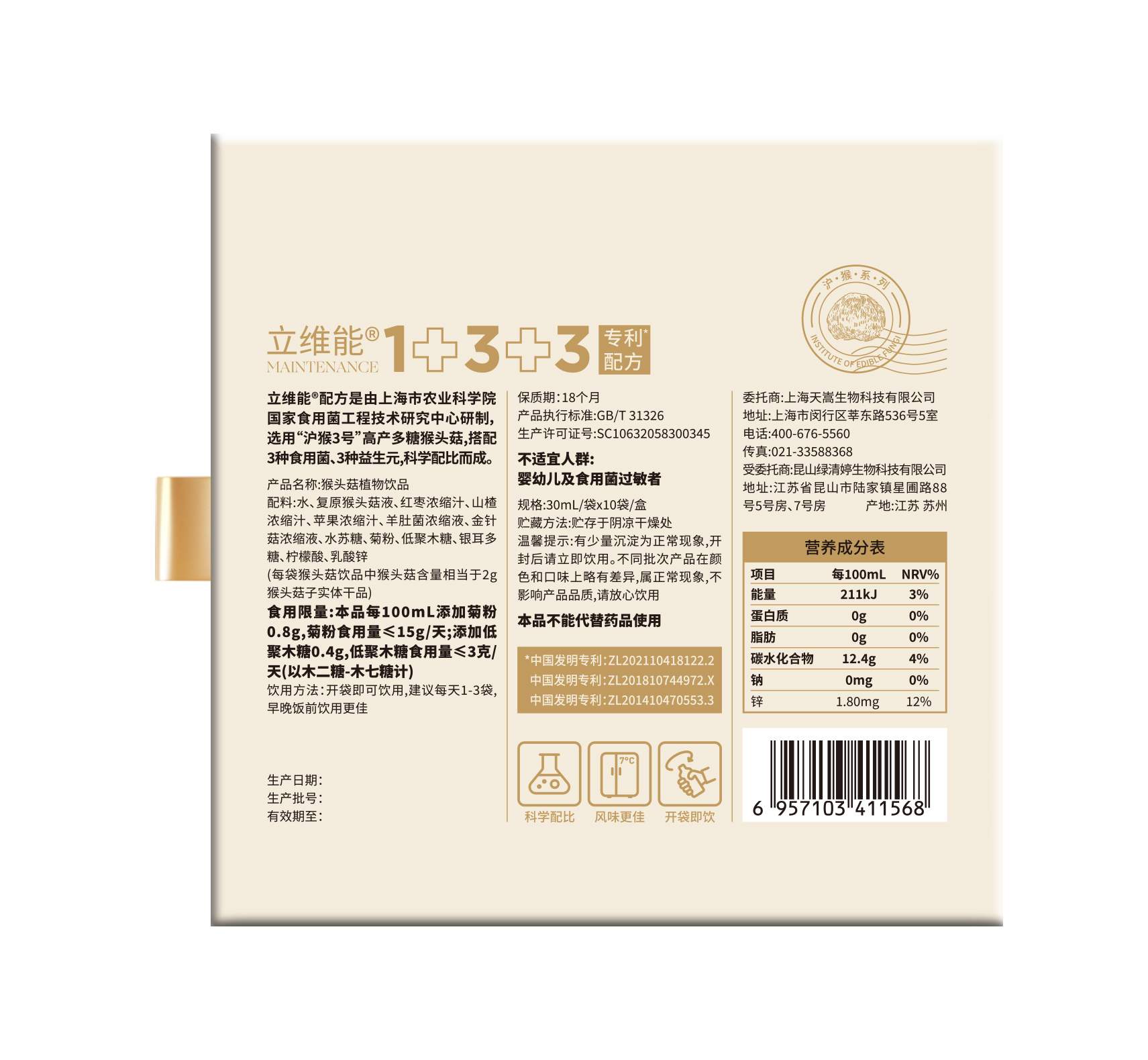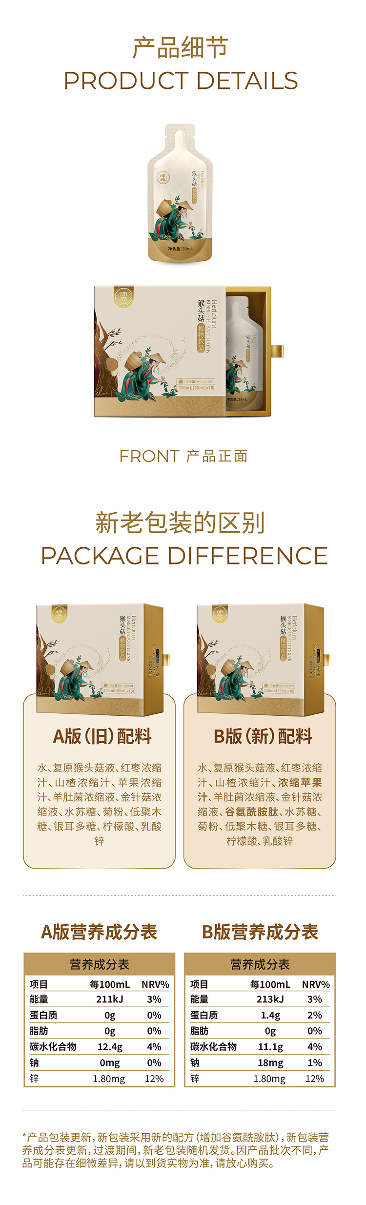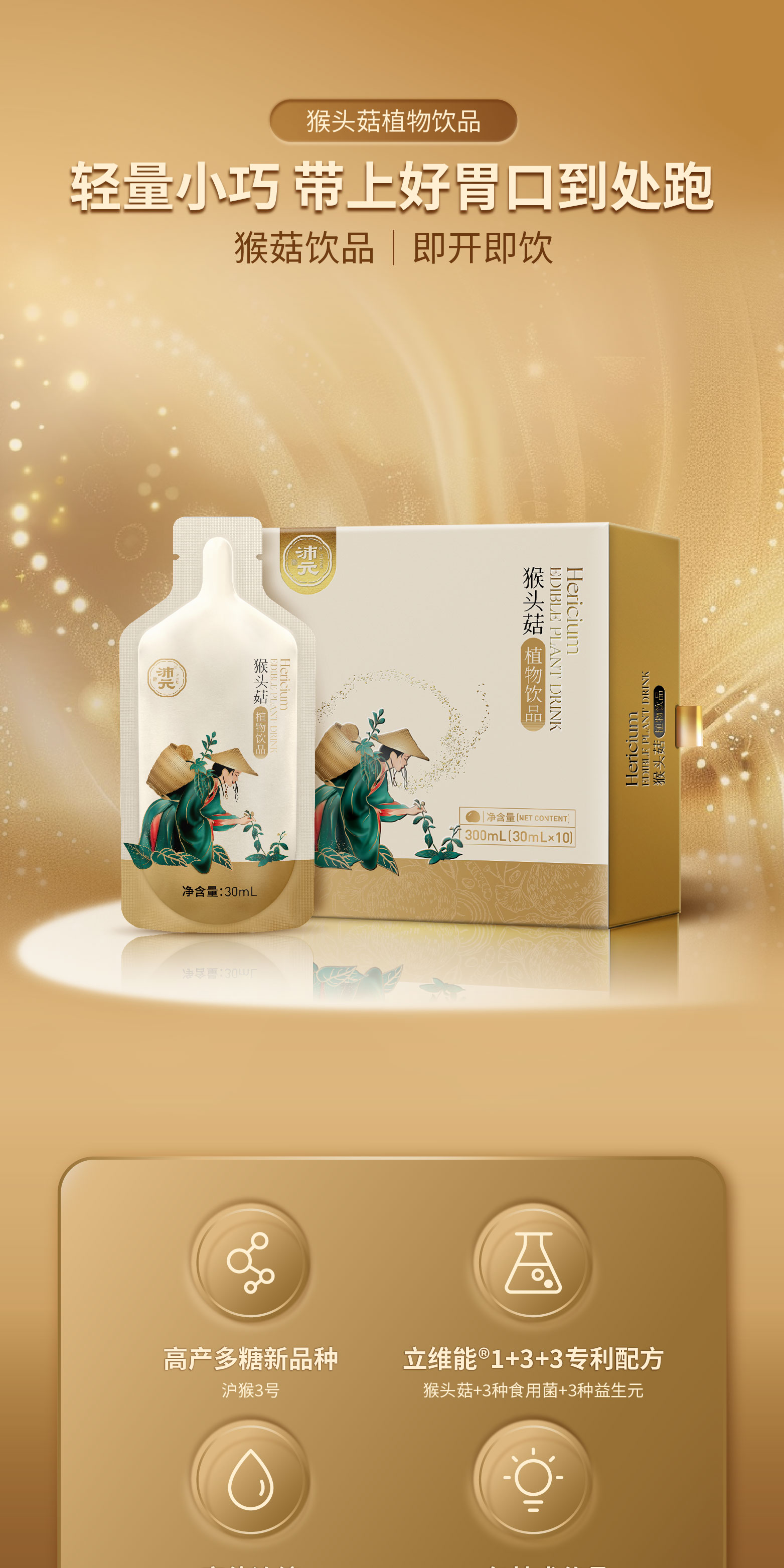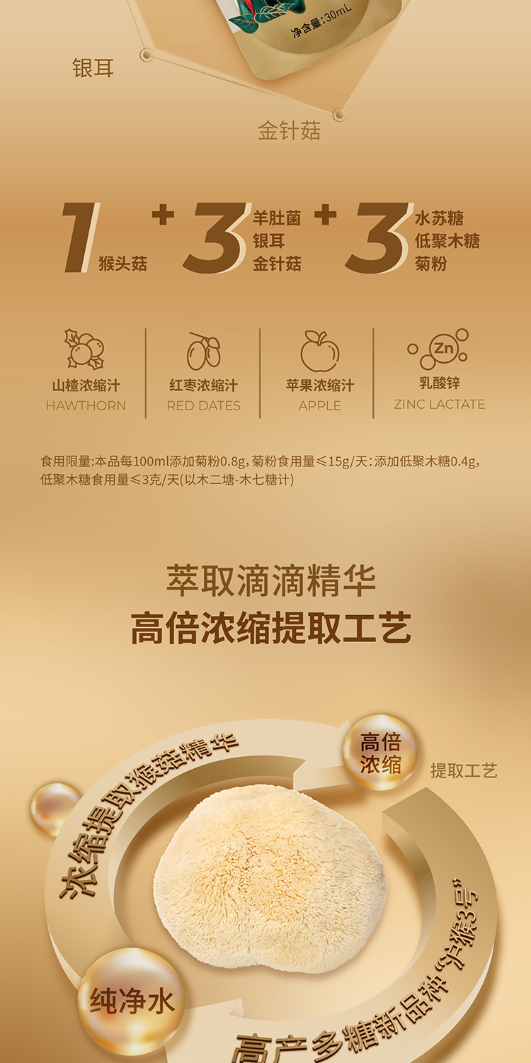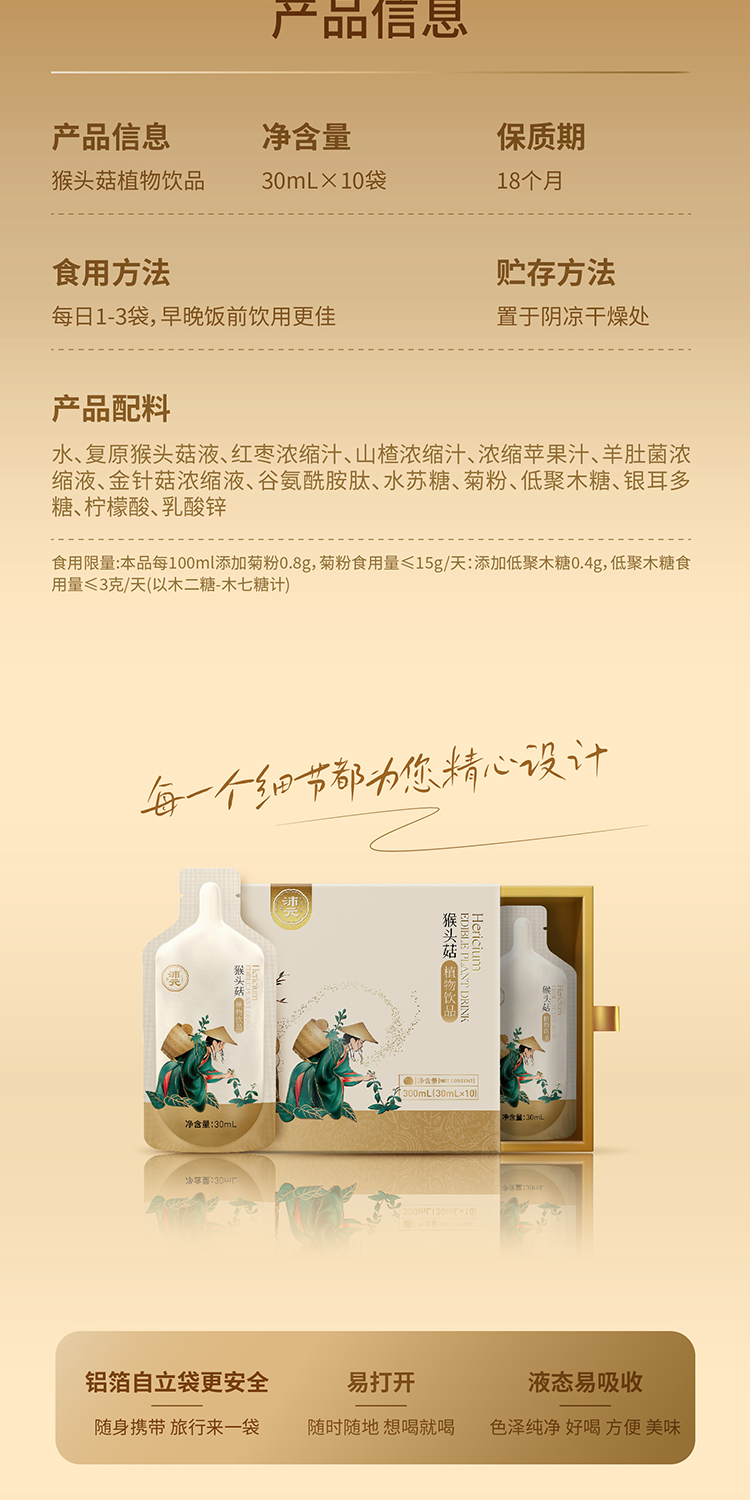 【限量特惠】猴头菇植物饮品30ml*10袋/盒 开袋即喝浓缩健康