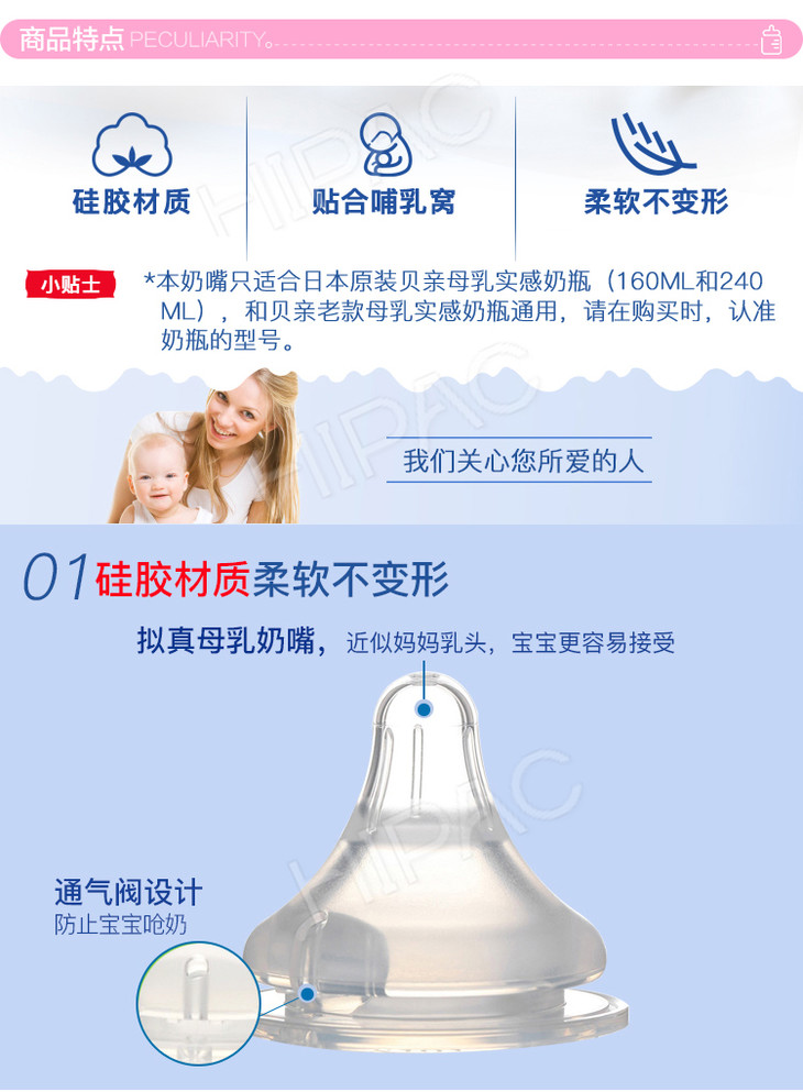 【一般贸易】日本贝亲Pigeon 宽口径硅胶奶嘴M号 3个月以上用 2个装