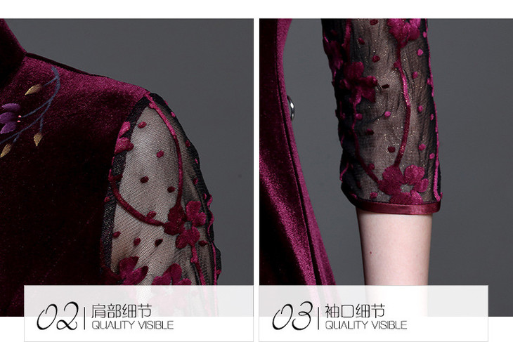 蕾丝加绒长袖保暖毛领日常旗袍 MLS6113