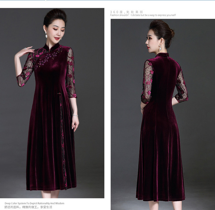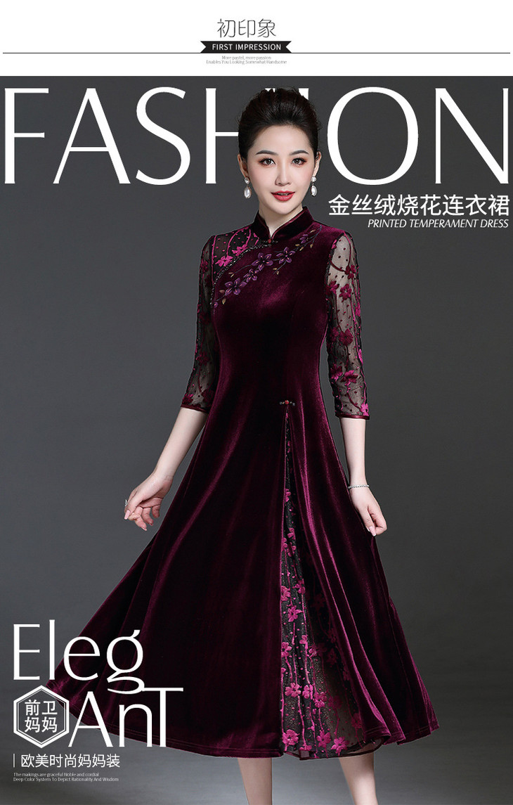 中国风复古,妈妈装连衣裙旗袍YZL-206