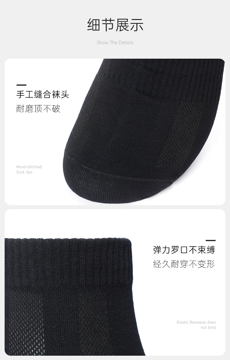 【实付满399送保温杯】【风巢抑菌袜(6双装)】黑色训练短袜男士防臭运动袜