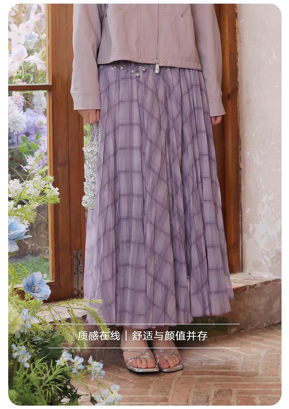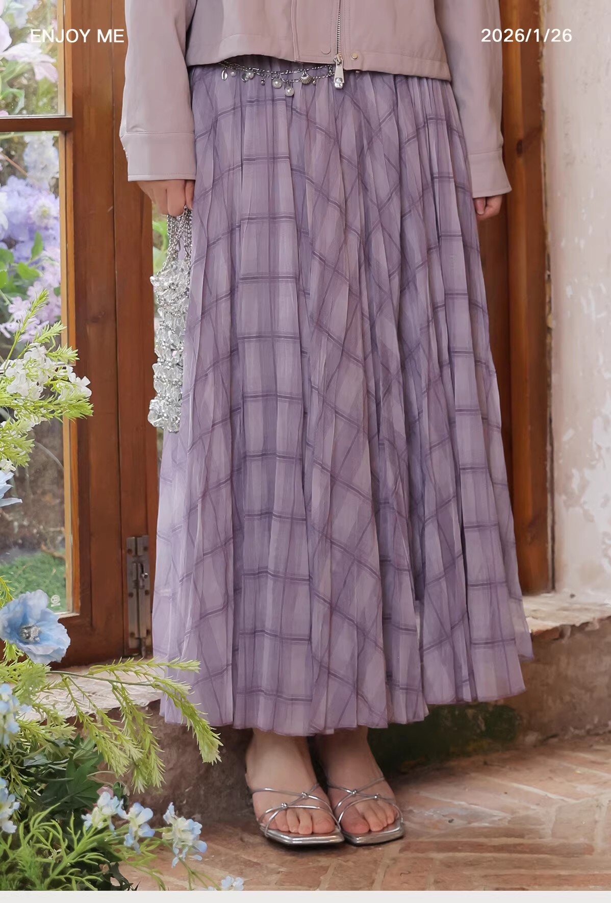 【门店同款】ENJOY春季飘逸雾蓝格纹裙 169146988