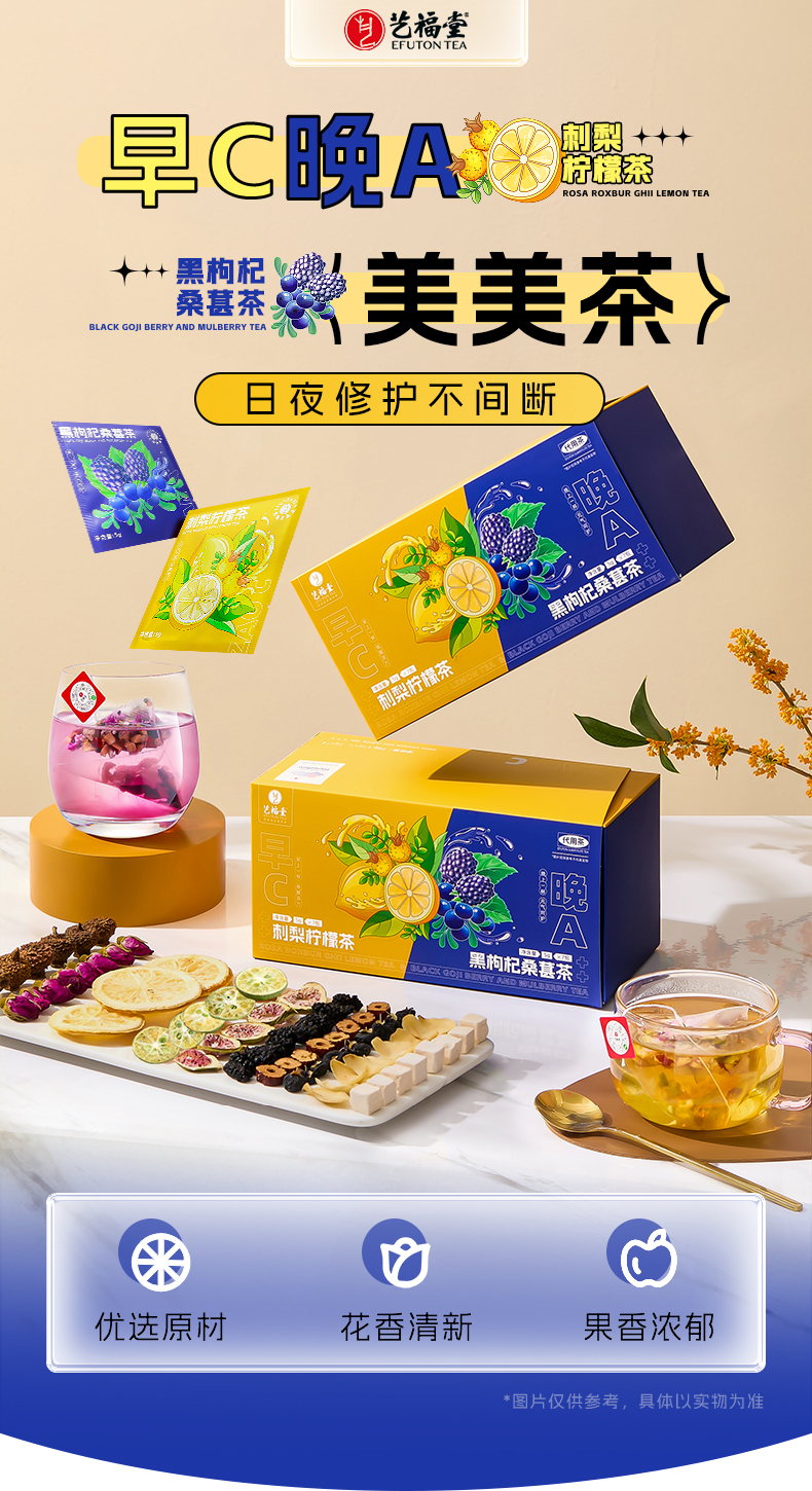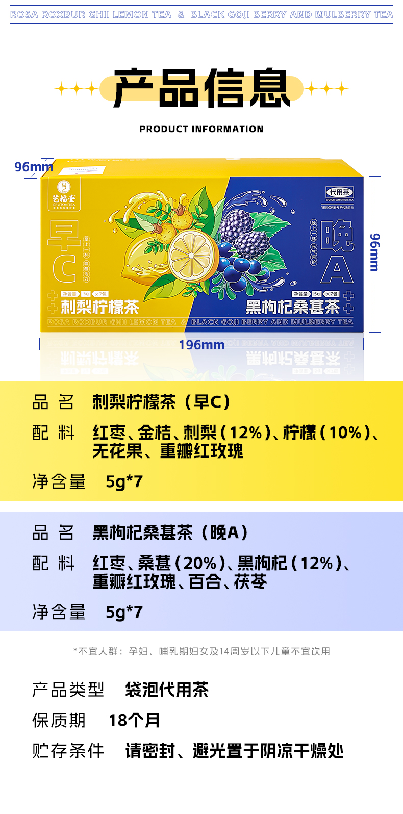 【第2件半价】艺福堂早C晚A茶 刺梨柠檬茶茶 黑枸杞桑葚茶共70g/盒