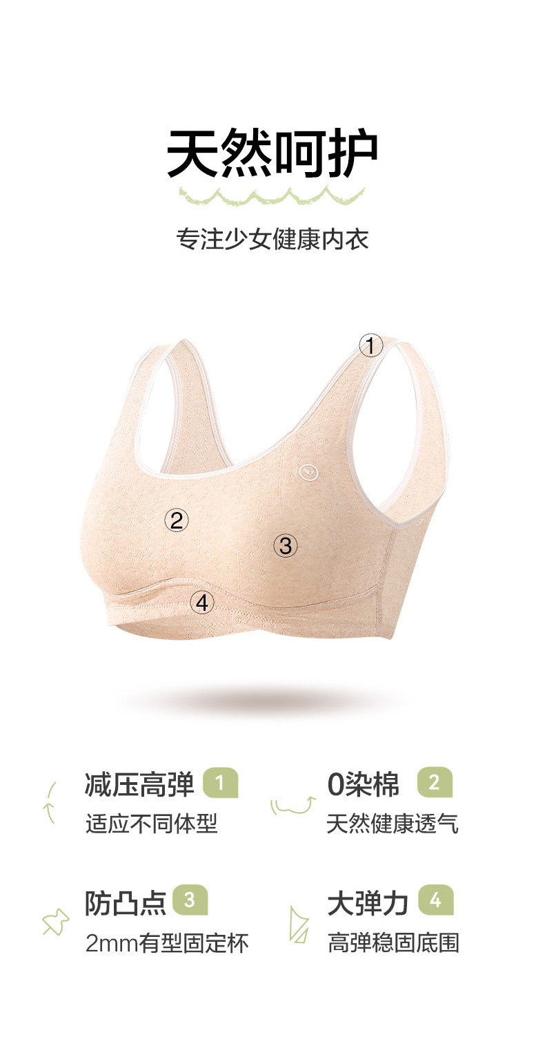 【减压高弹❗️天然健康透气】纯棉彩棉大童学生舒适胸罩二三阶段中学生少女内衣发育期文胸。jc