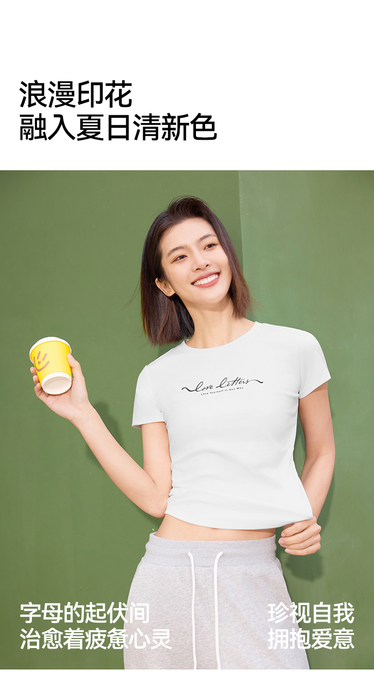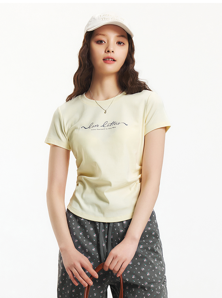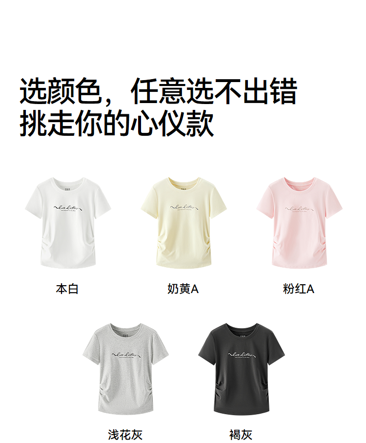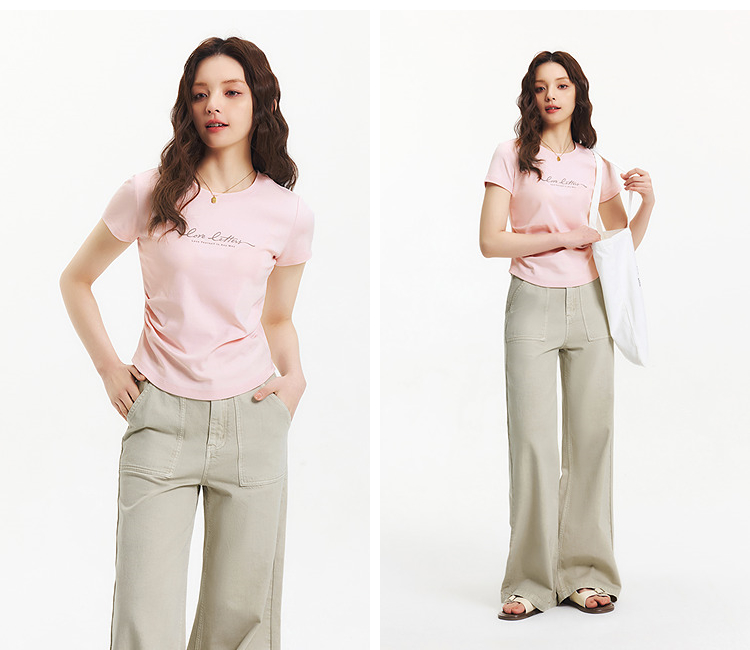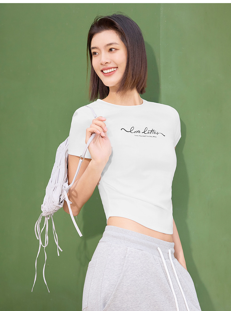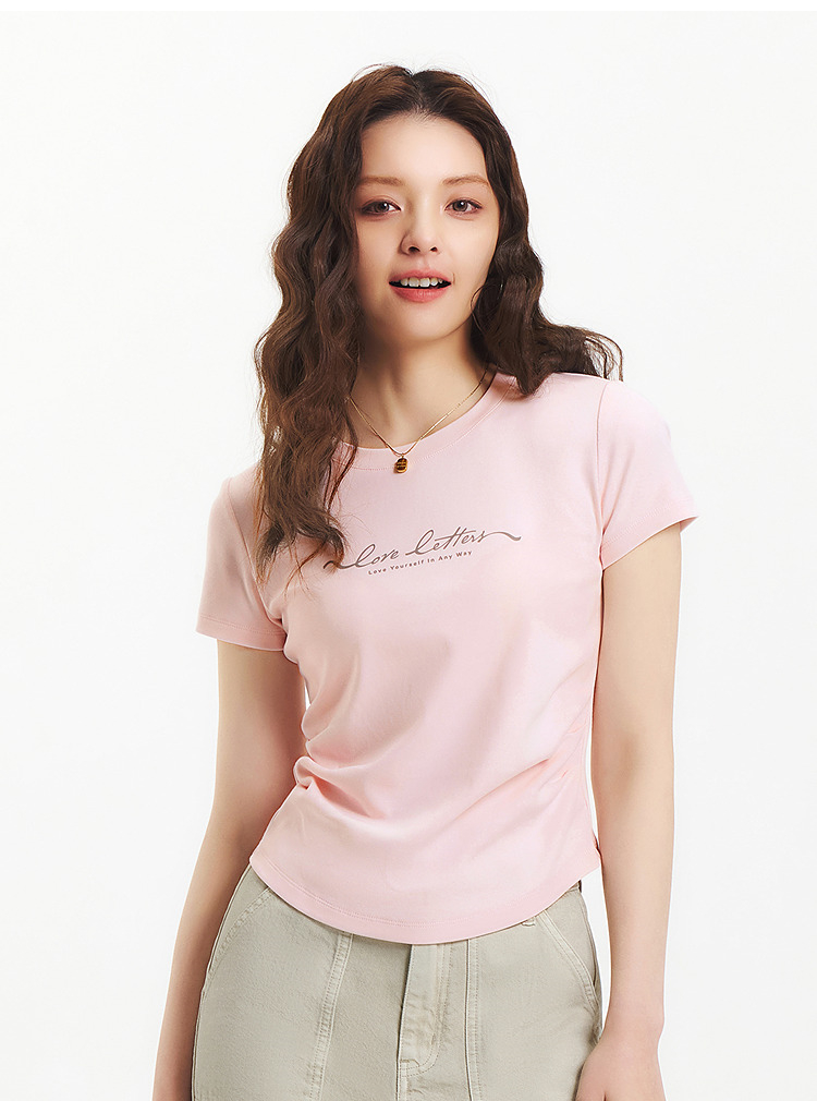 【99元任选2件】森马短袖T恤女夏季短款修身正肩字母印花衣服褶皱收腰小心机上衣
