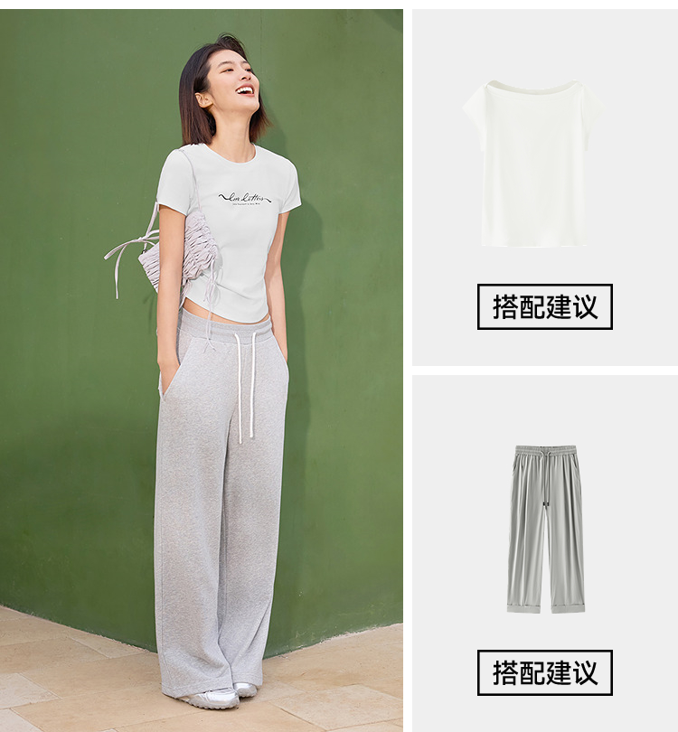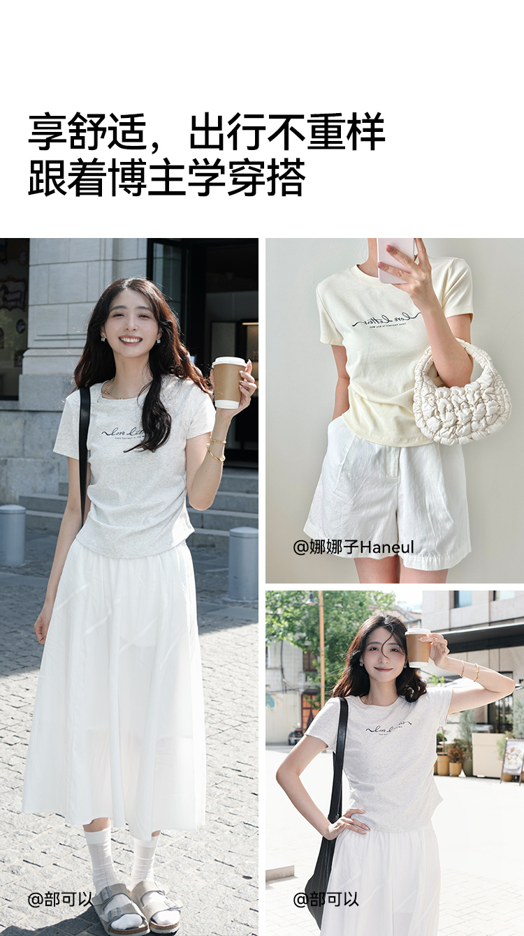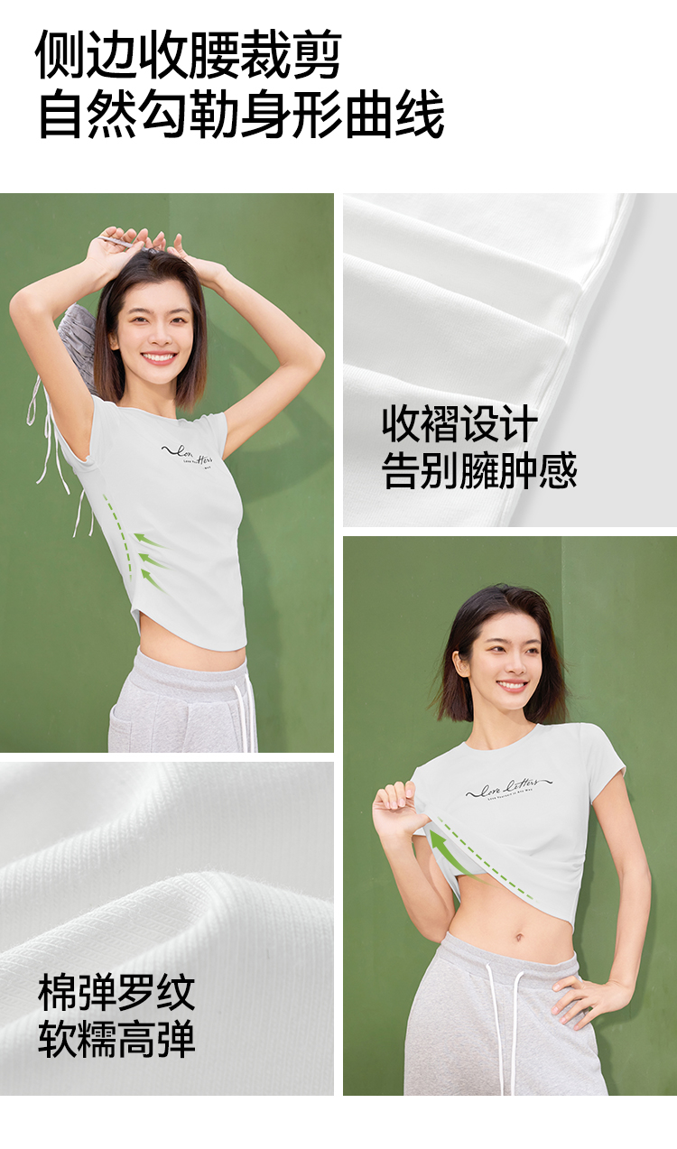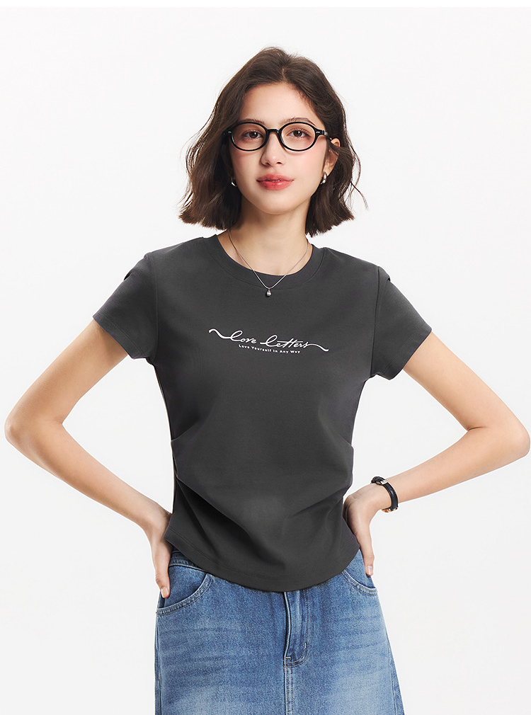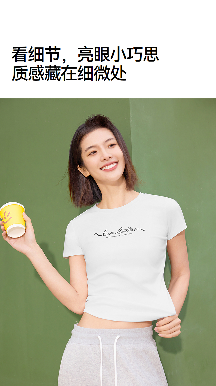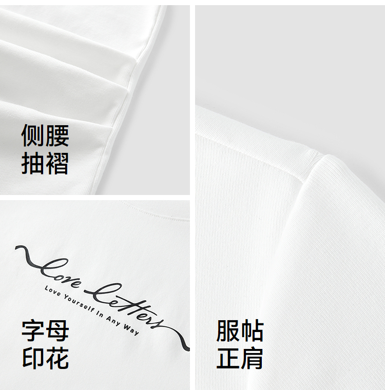 【99元任选2件】森马短袖T恤女夏季短款修身正肩字母印花衣服褶皱收腰小心机上衣