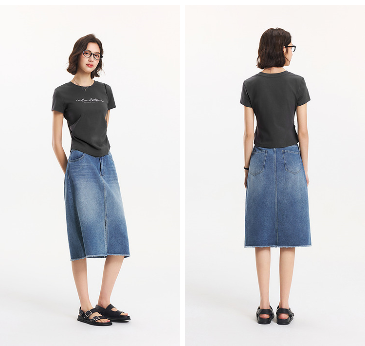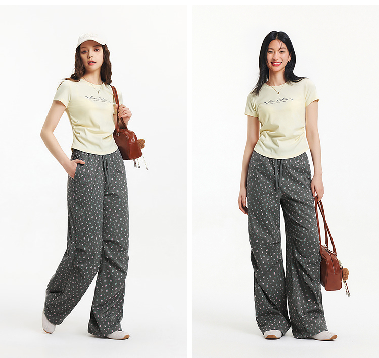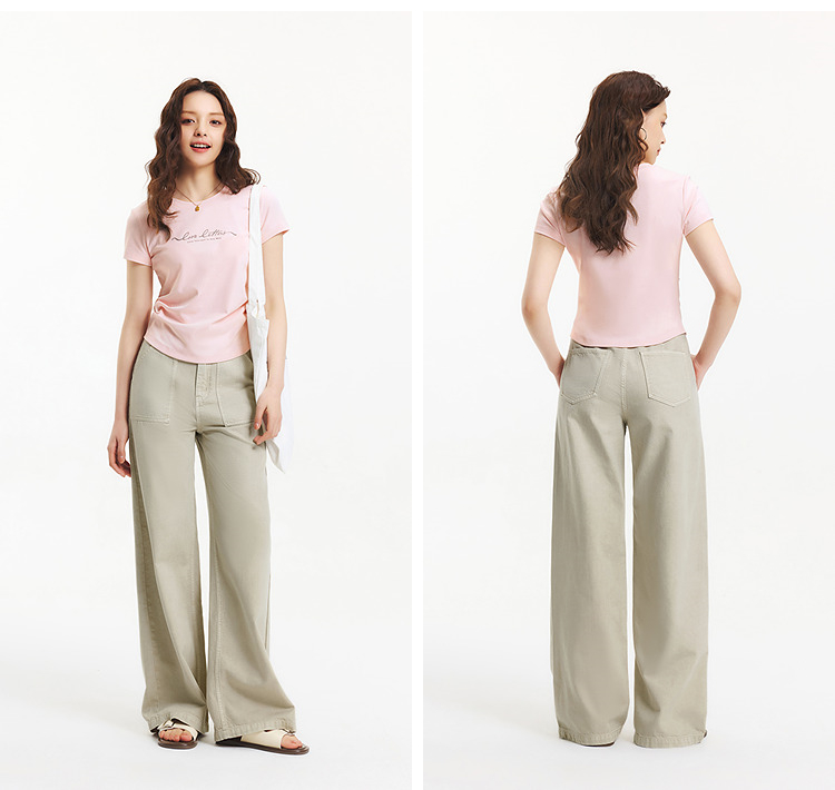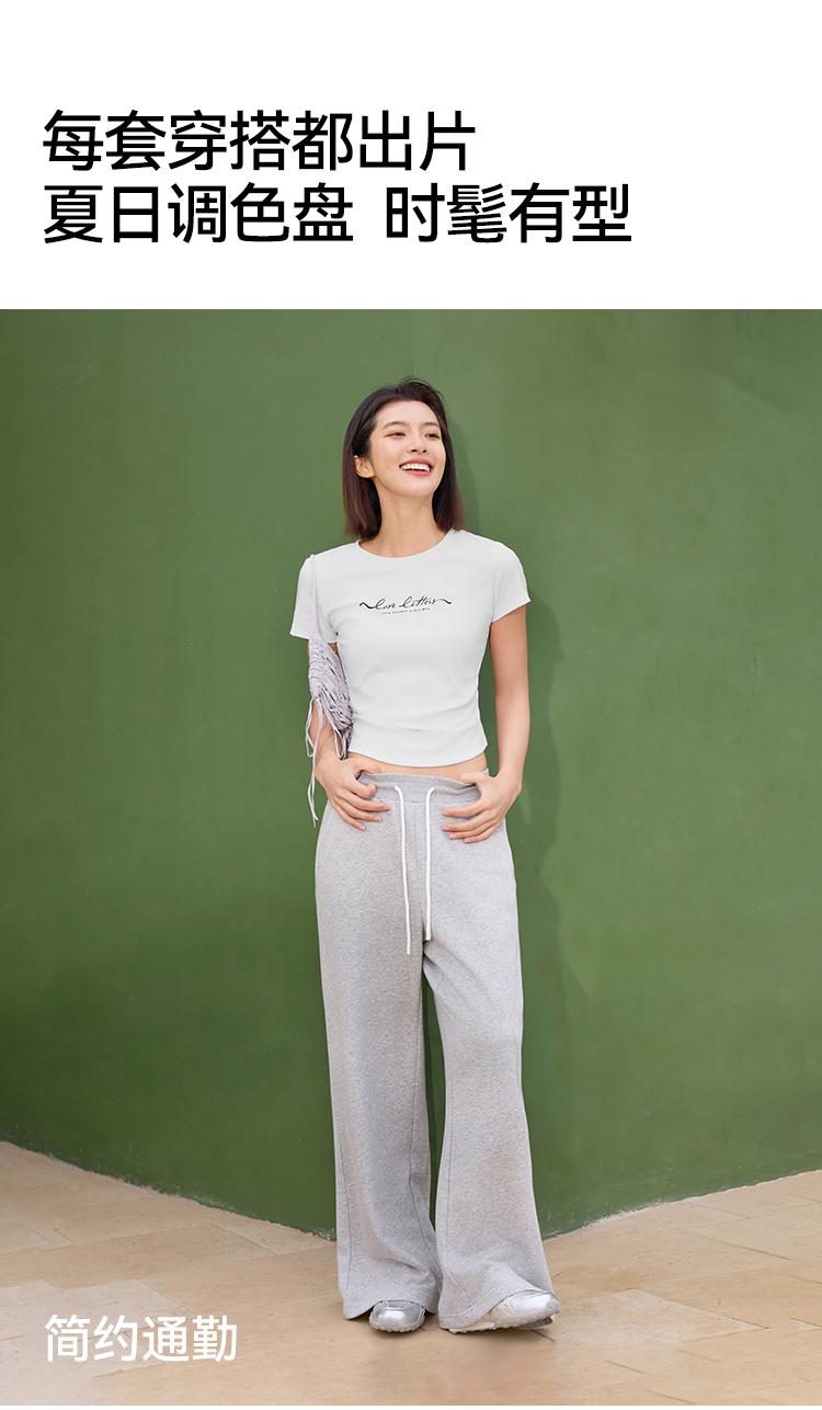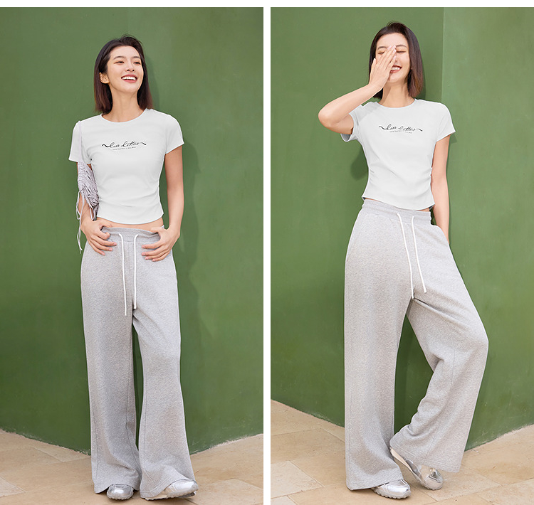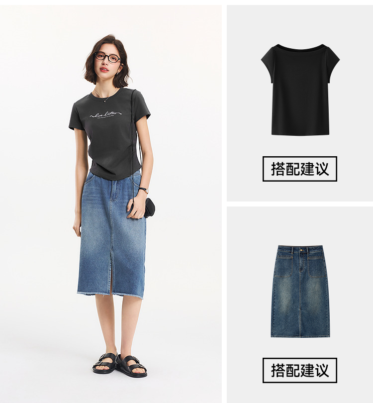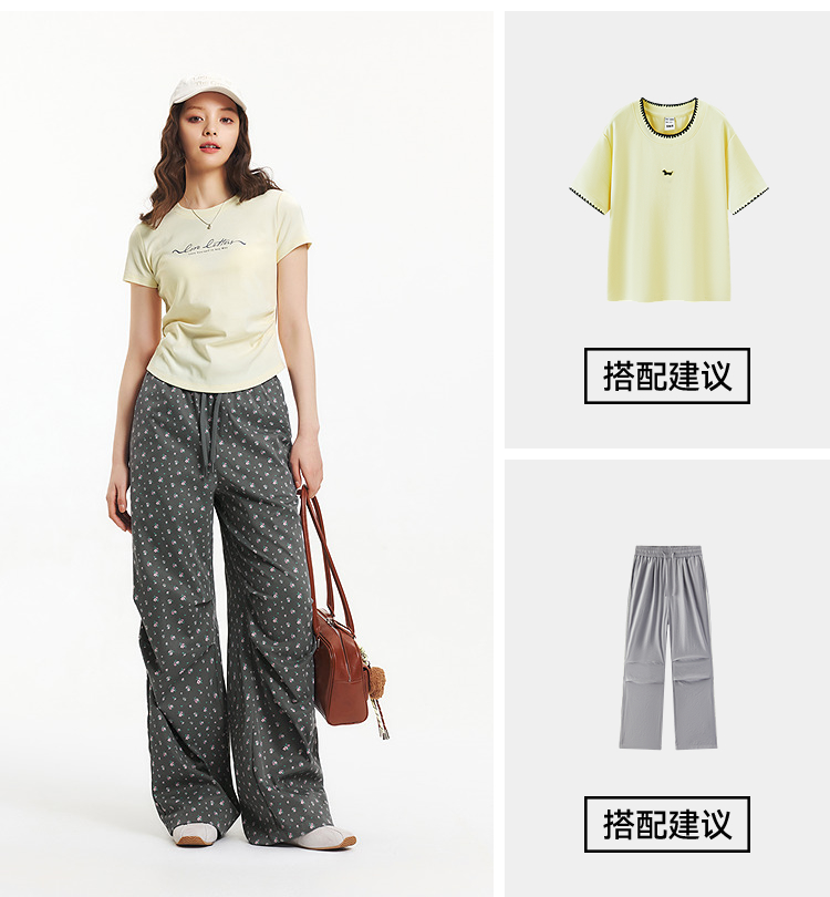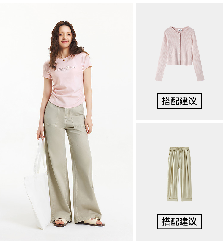 【99元任选2件】森马短袖T恤女夏季短款修身正肩字母印花衣服褶皱收腰小心机上衣