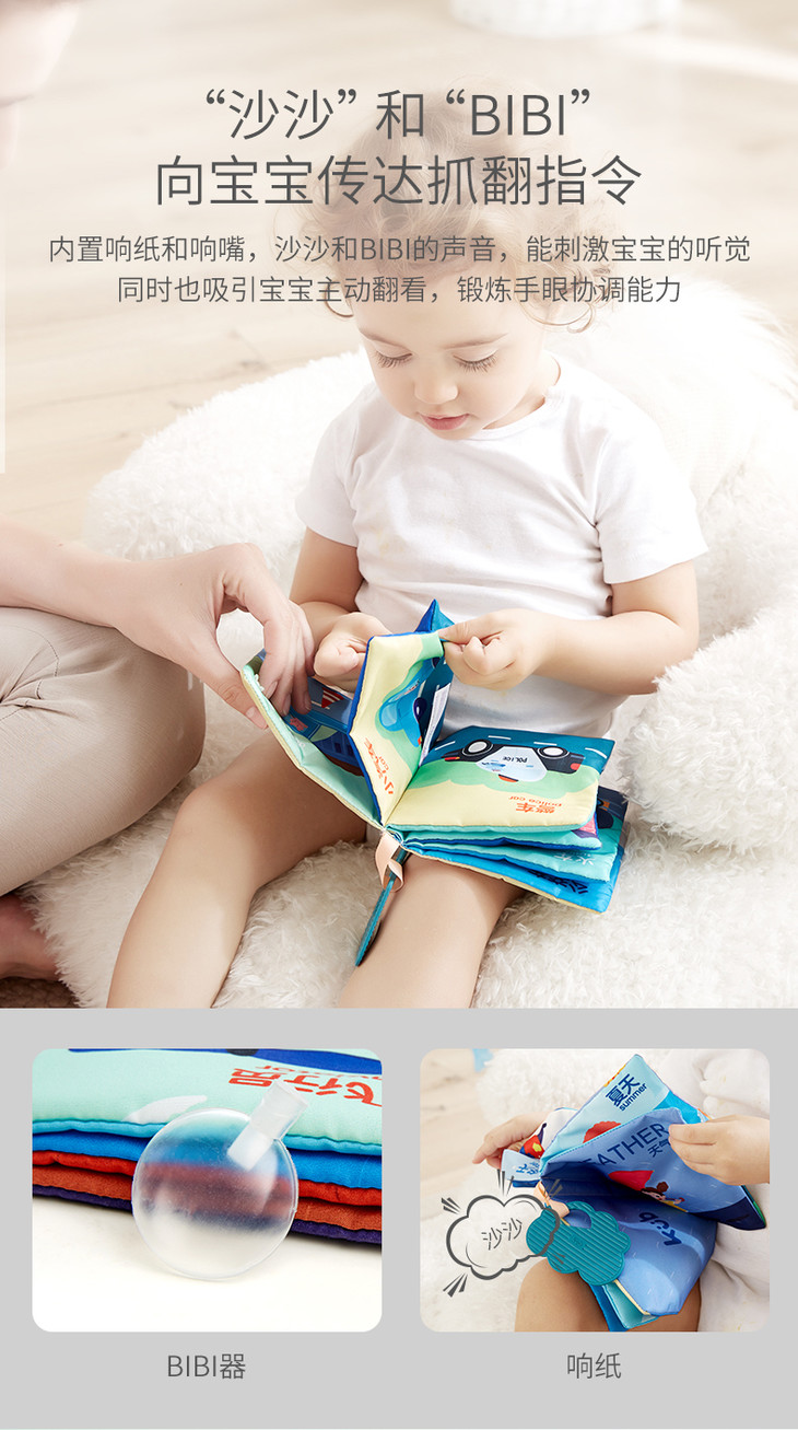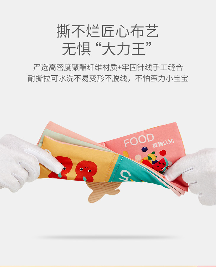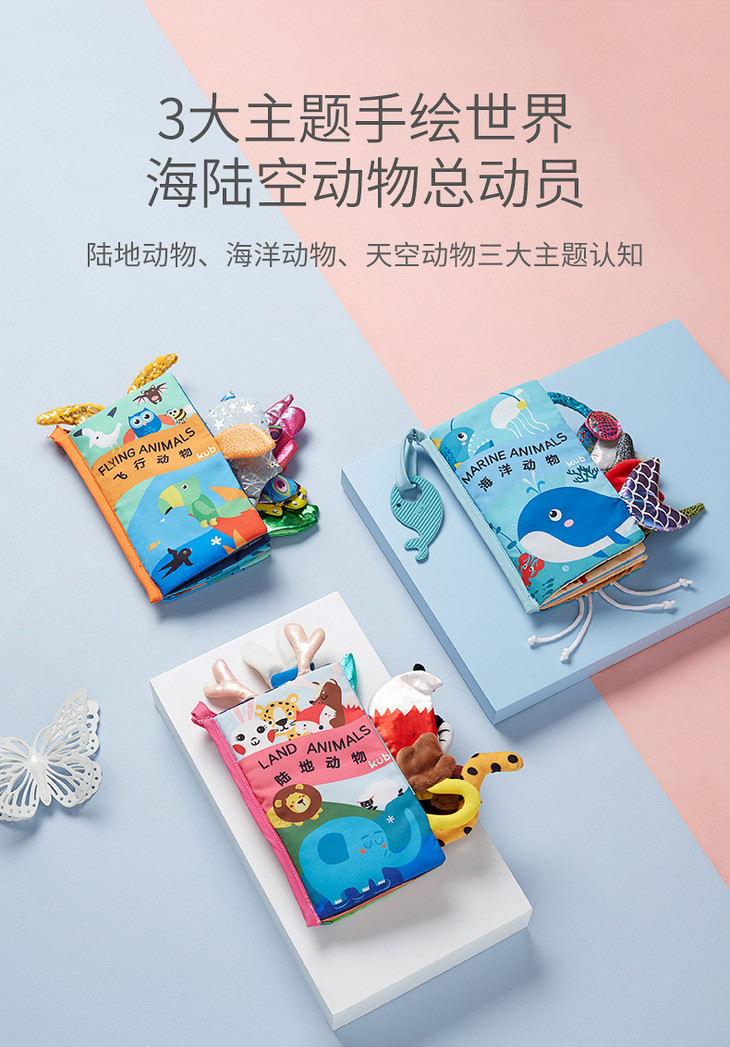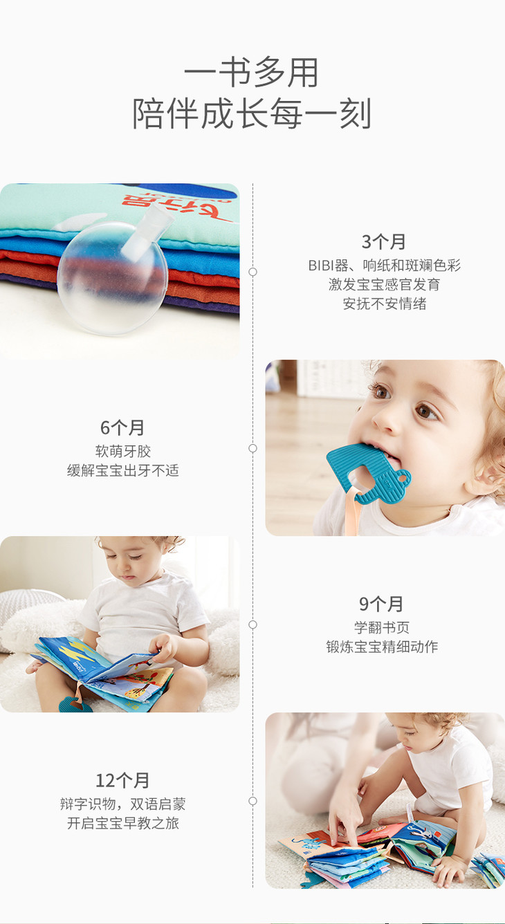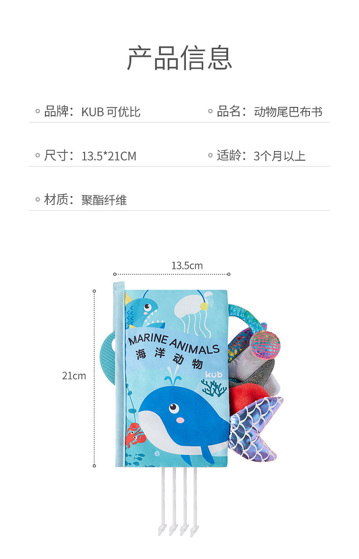 可优比尾巴布书婴儿早教撕不烂可咬立体布书0-6-12个月宝宝玩具