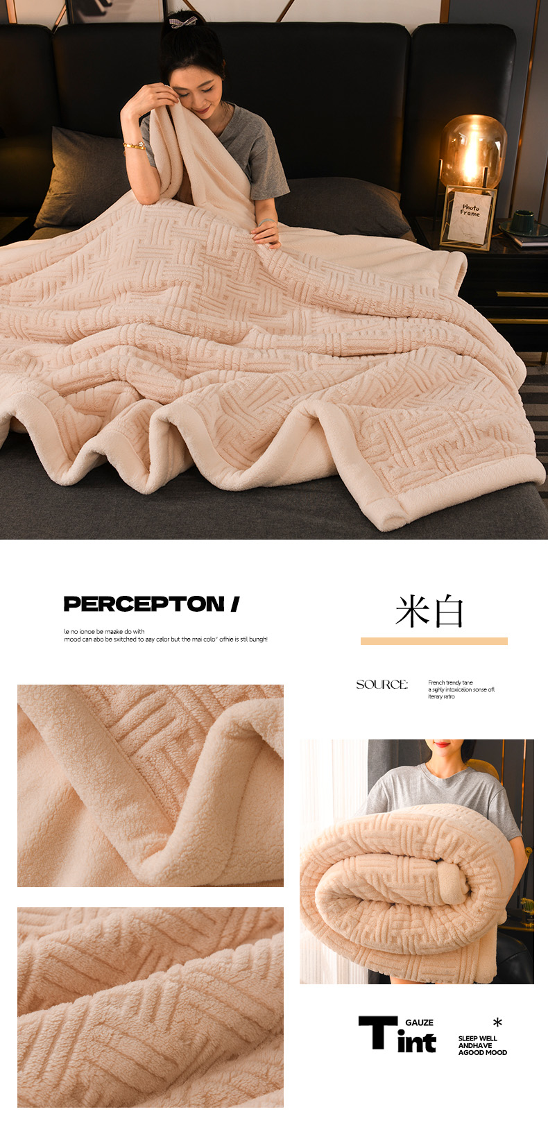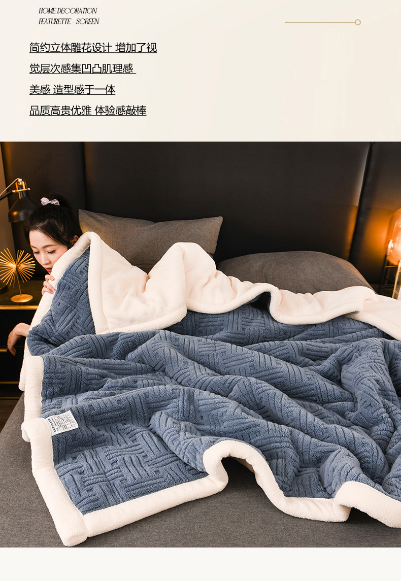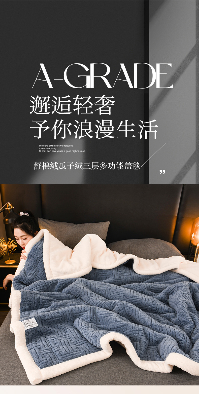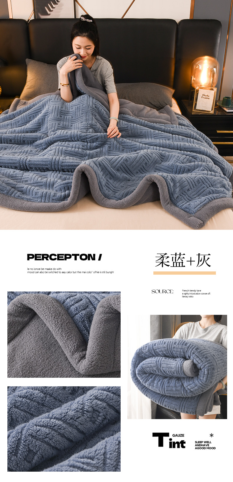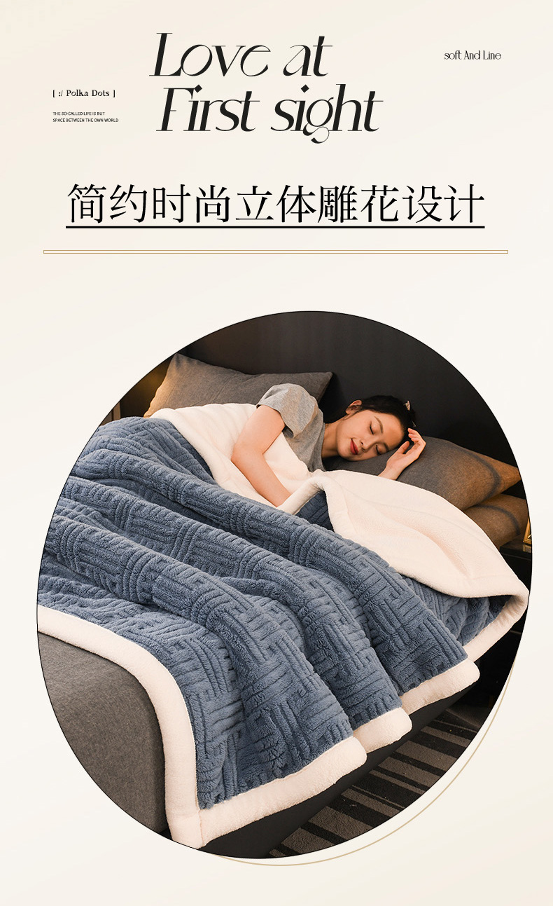 【三层夹棉立体舒棉绒毛毯】冬季加厚午睡盖毯珊瑚绒沙发毯