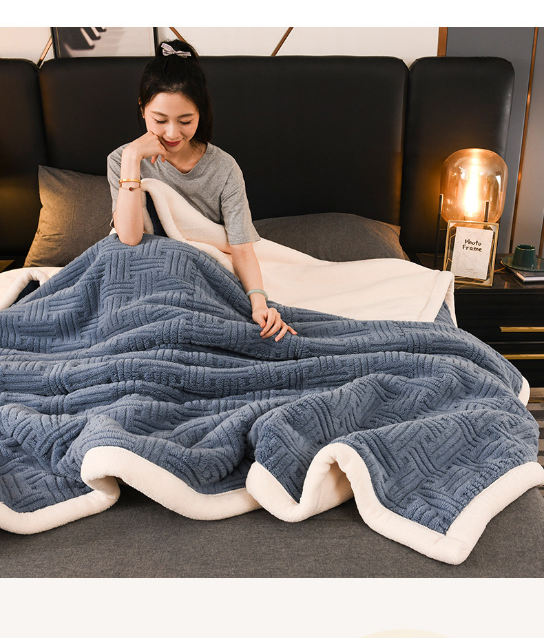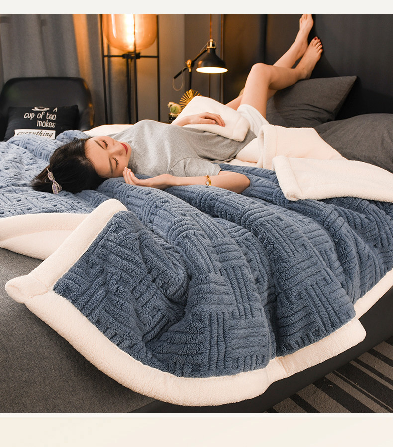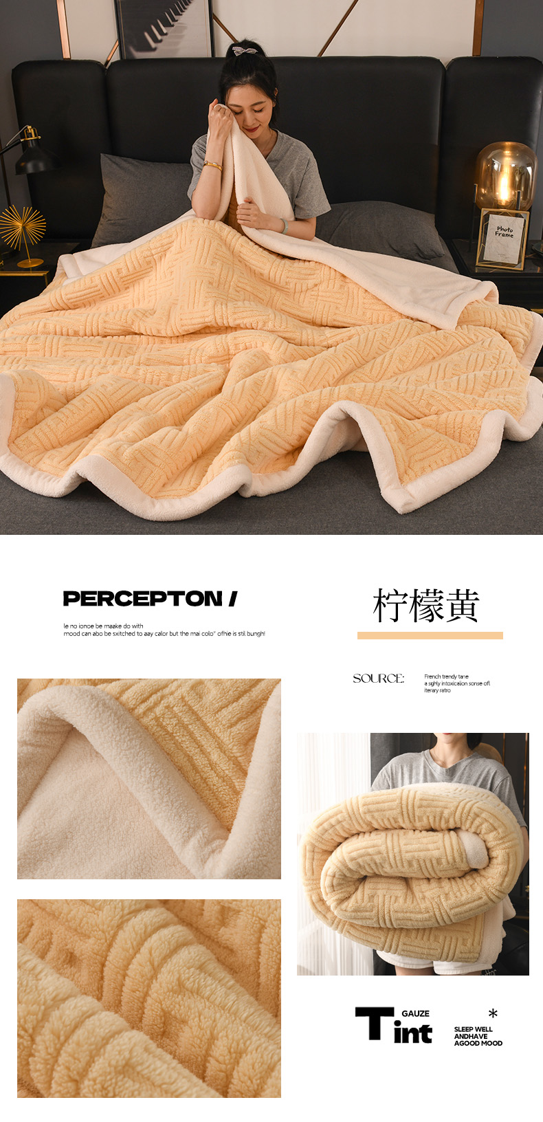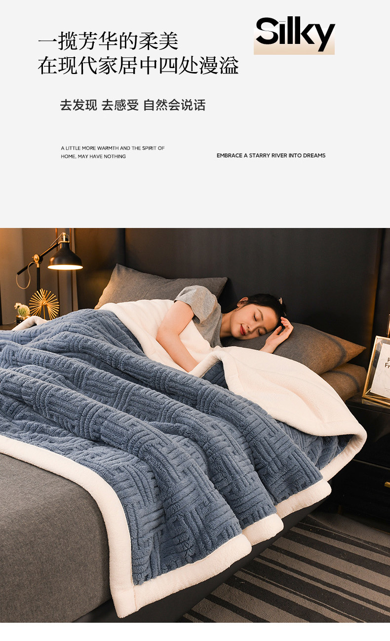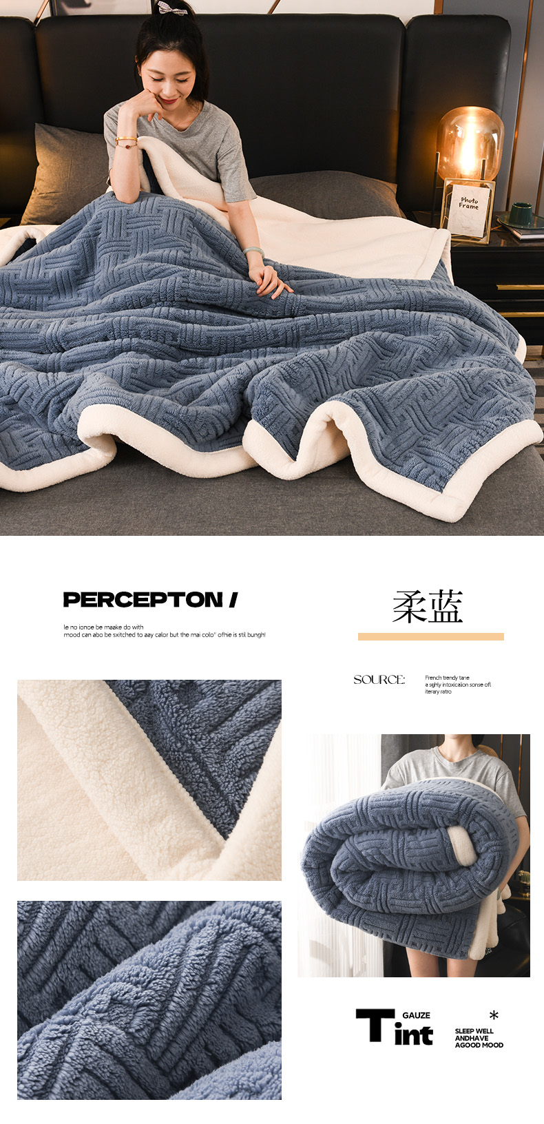 【三层夹棉立体舒棉绒毛毯】冬季加厚午睡盖毯珊瑚绒沙发毯