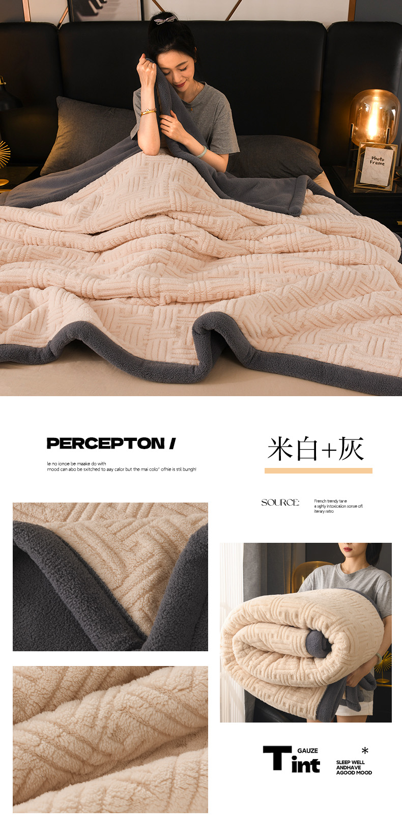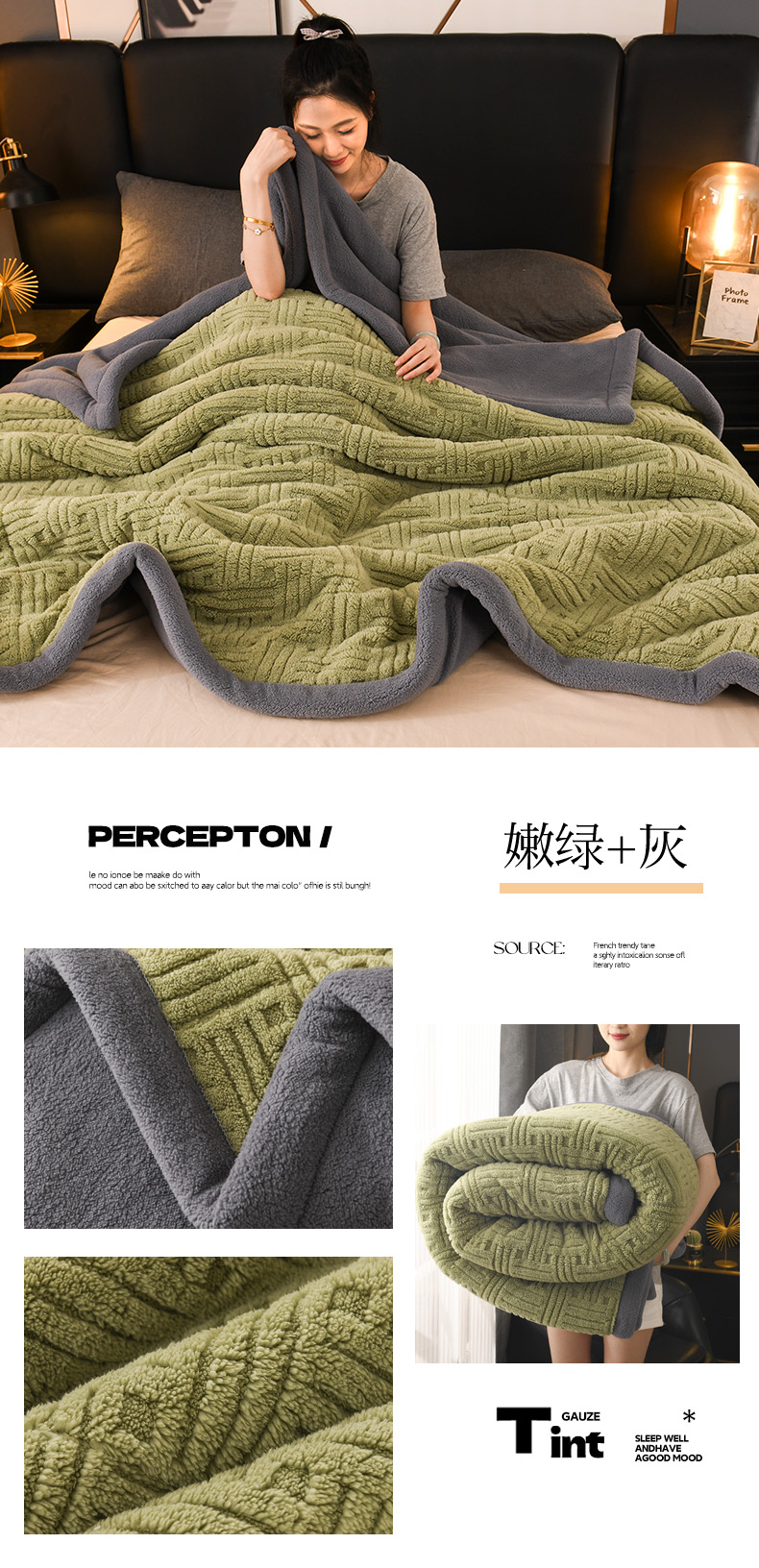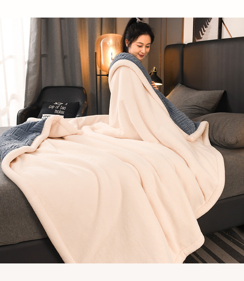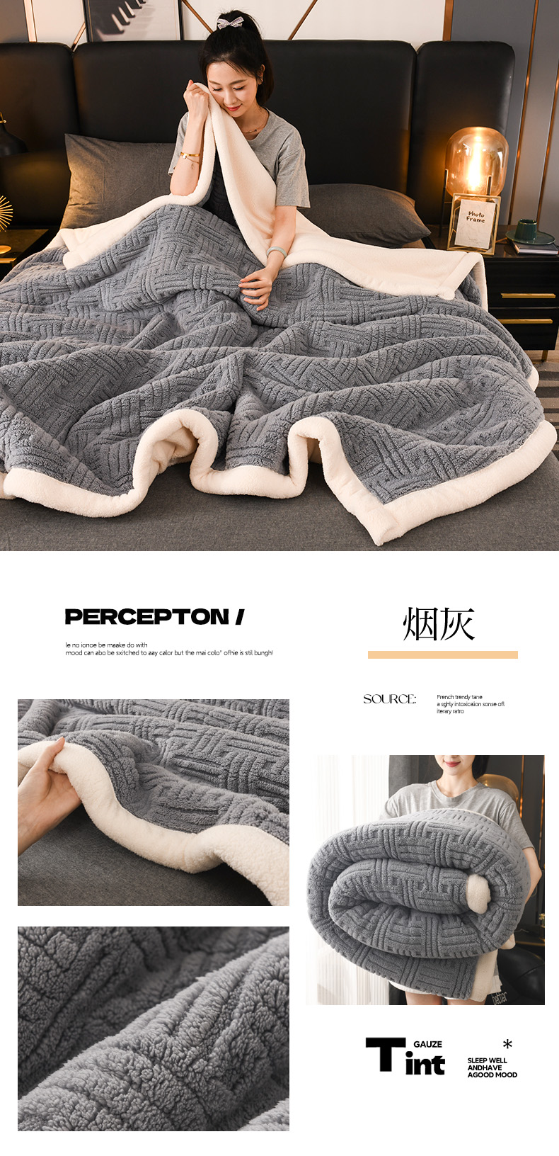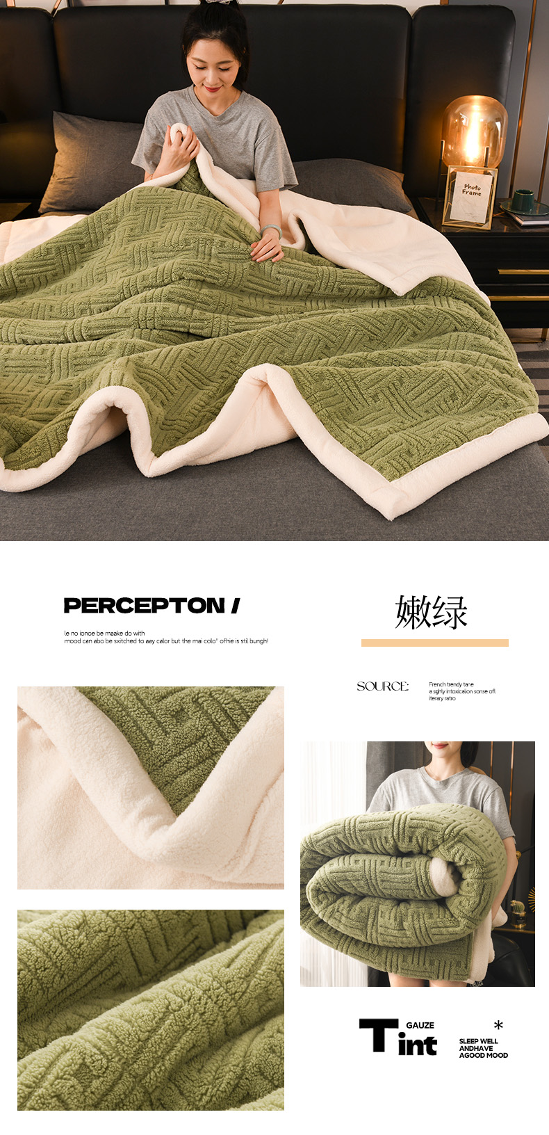 【三层夹棉立体舒棉绒毛毯】冬季加厚午睡盖毯珊瑚绒沙发毯