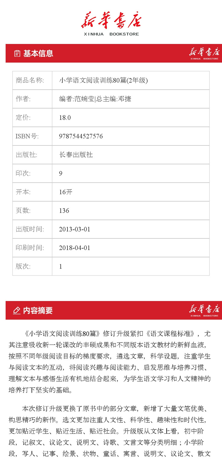 小学语文阅读训练80篇 二年级 白金版 68所名校小学生语文阅读理解同步课外学习辅导教材 阅读理解真题练习本 2年级练习册寒暑假