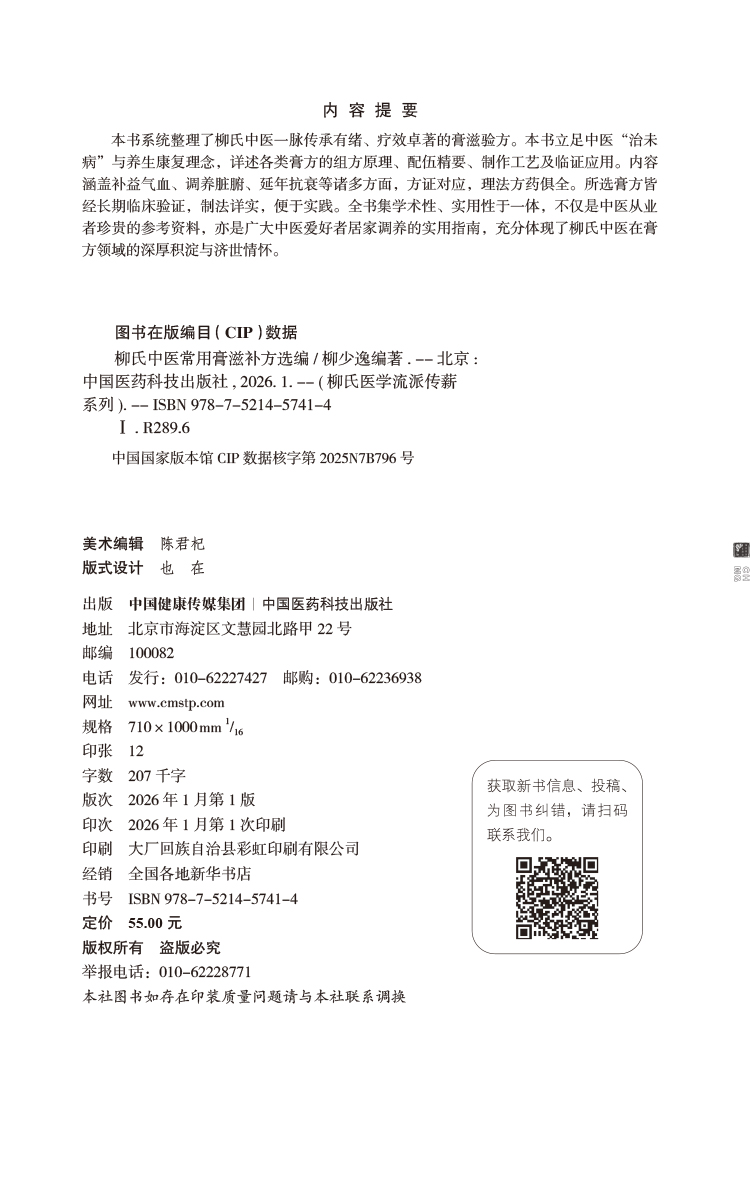 书名:柳氏中医常用膏滋补方选编(柳氏医学流派传薪系列)