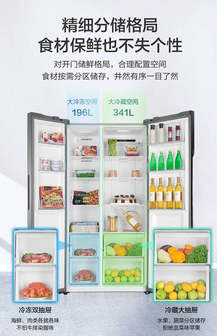 【品牌特价】海尔统帅537L双门对开门冰箱钣金 风冷无霜变频 智能控温