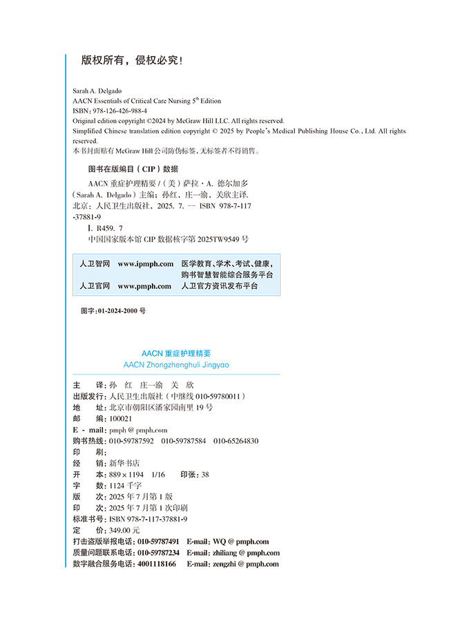 AACN重症护理精要 第5五版 孙红 庄一渝 关欣 主译 涵盖了ICU常见的病理情况和管理策略与CCRN认证考试的规划密切相关人民卫生出版社