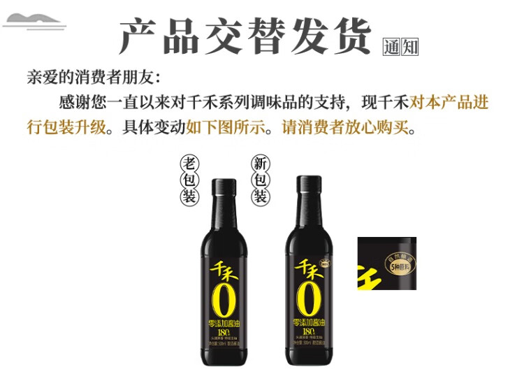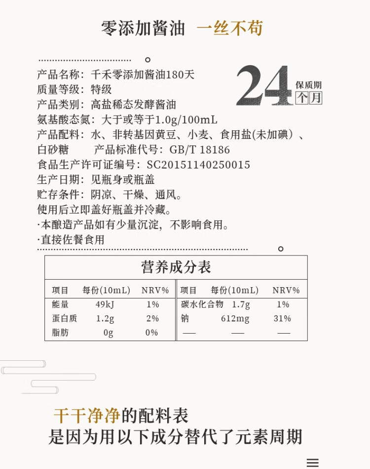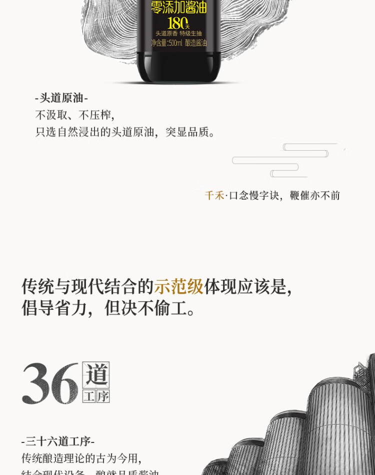 千禾 零添加酱油180天(酿造酱油) 500ml/瓶