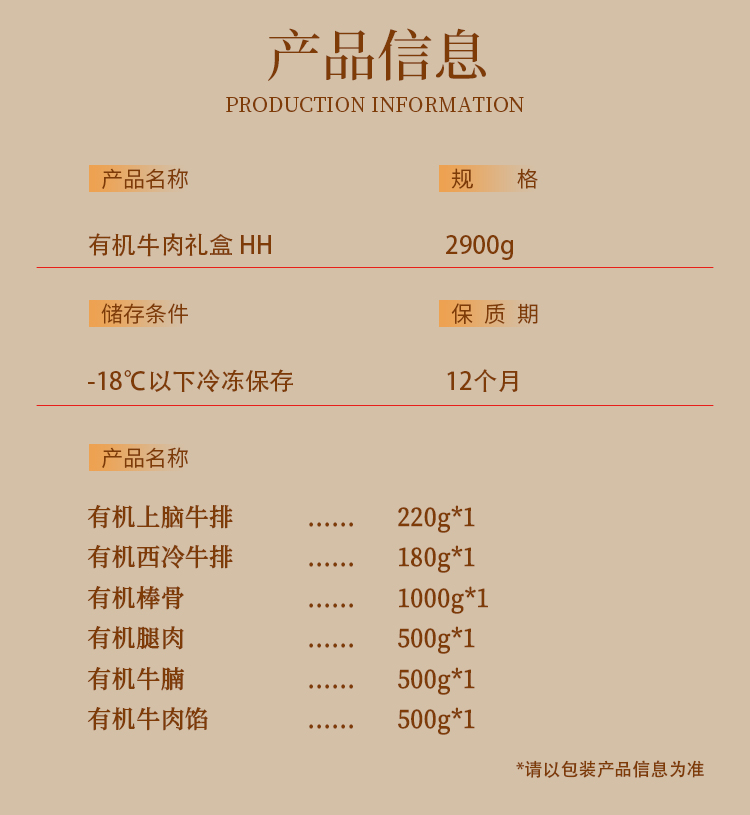 国产天莱香牛褐牛有机牛肉礼盒2.9kg【HH】(红色、黑色礼盒随机发货)【实物&礼品卡】