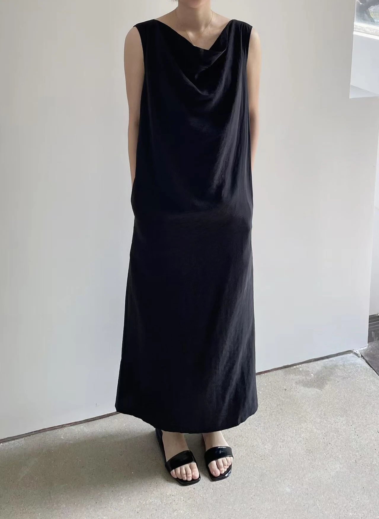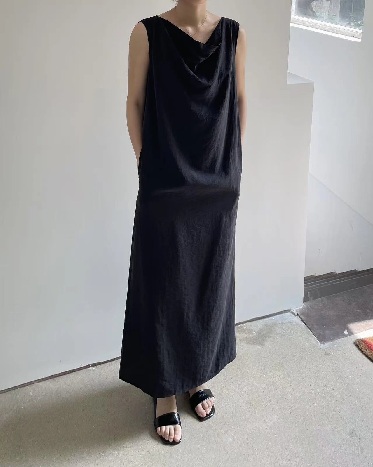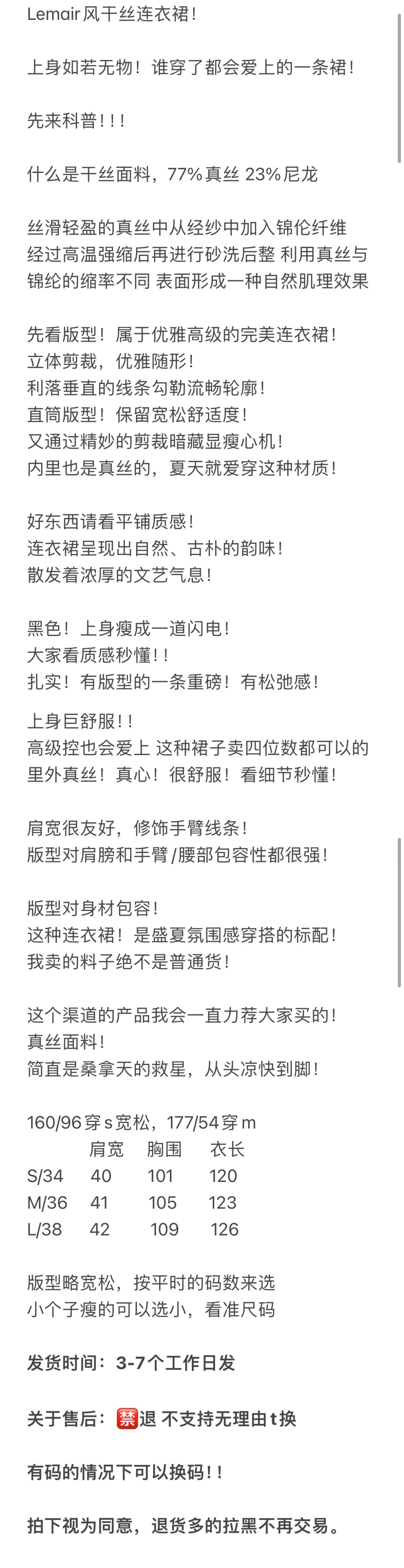 福利重磅!LM风干丝荡领连衣裙 里外真丝 直筒版型一片式连衣裙