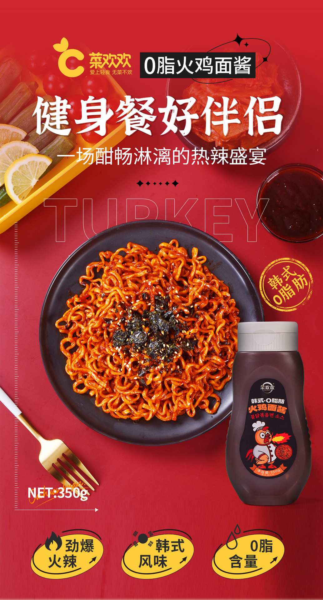 【3瓶更超值❗️韩式火鸡面酱料】健身餐好伴侣,0脂火鸡面酱,一场酣畅淋漓的热辣盛宴,入口微辣,辣里透香,带来爆辣体验,速食拌面酱火鸡面酱料L