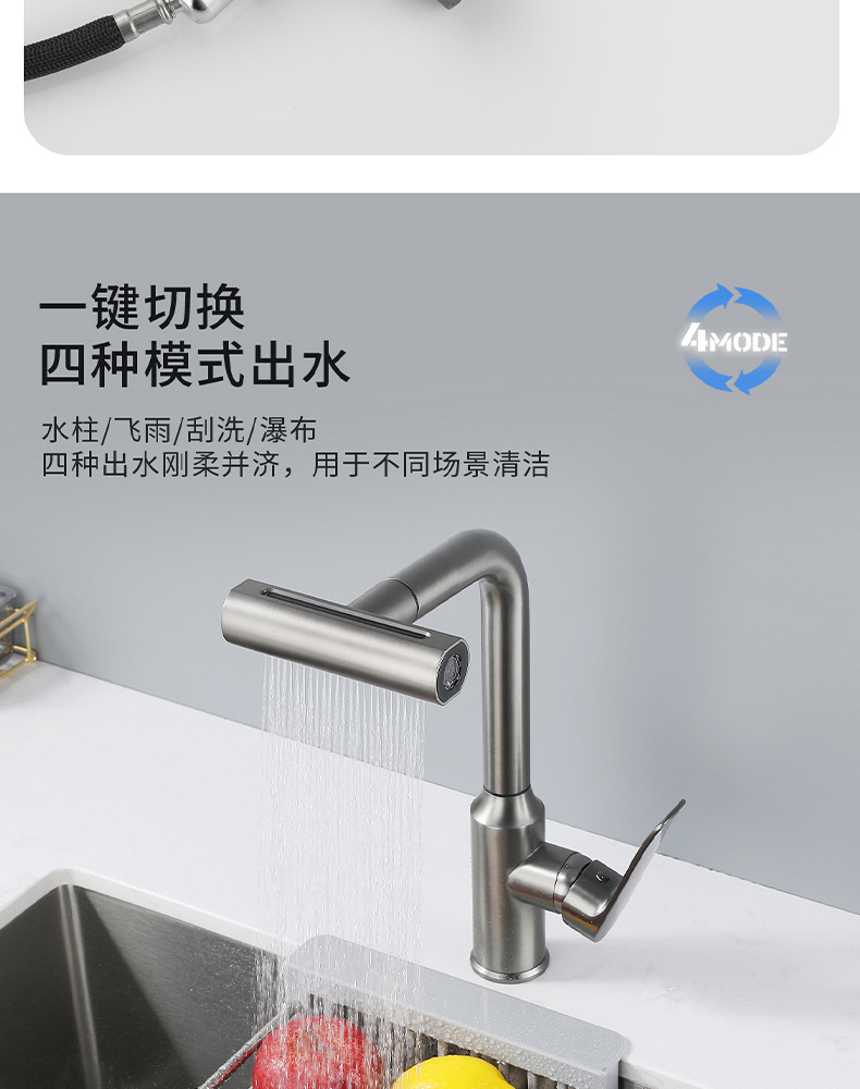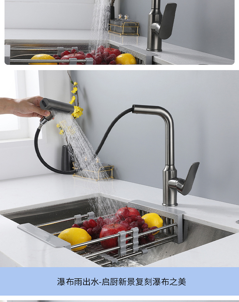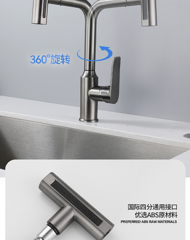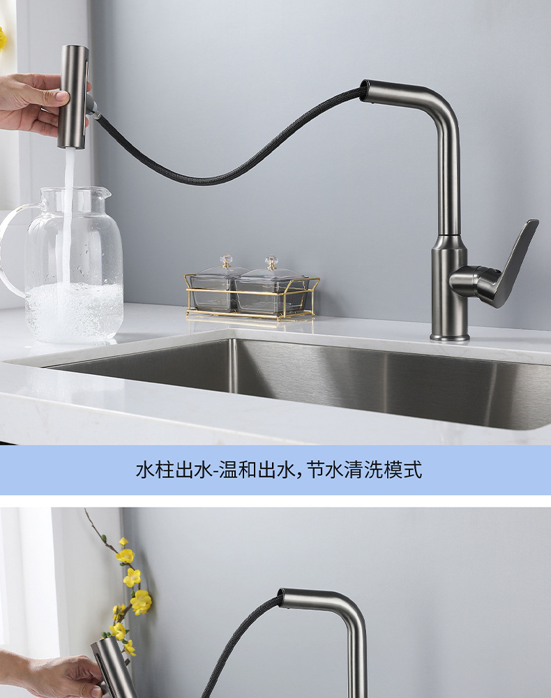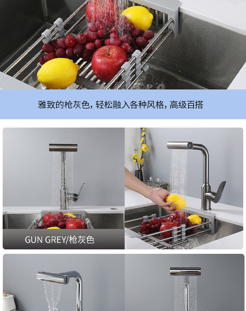 7725新飞雨厨房龙头-枪灰抽拉