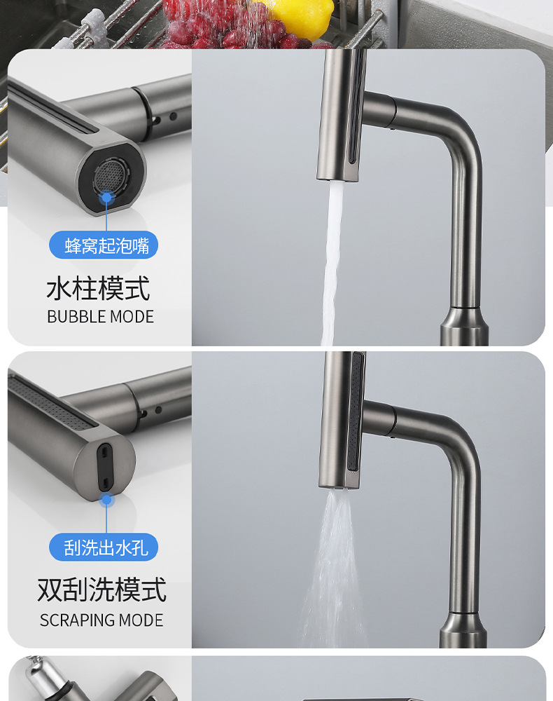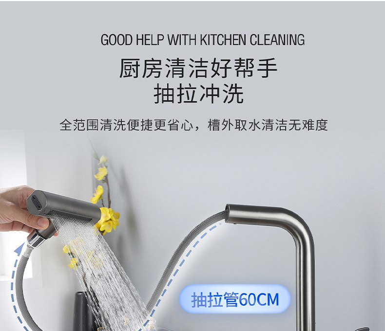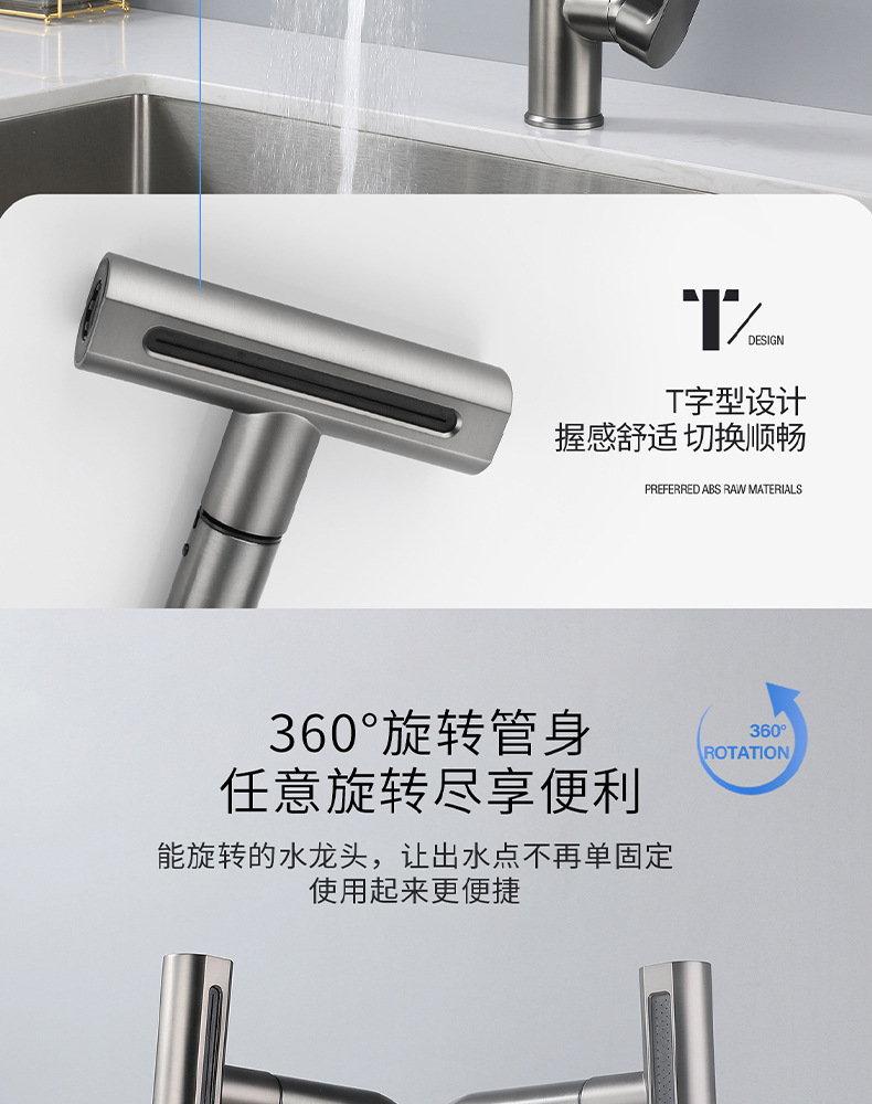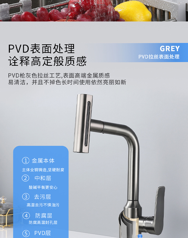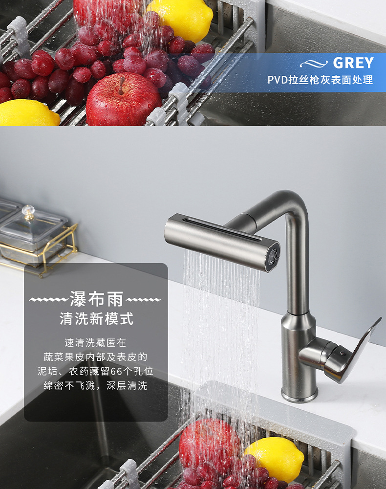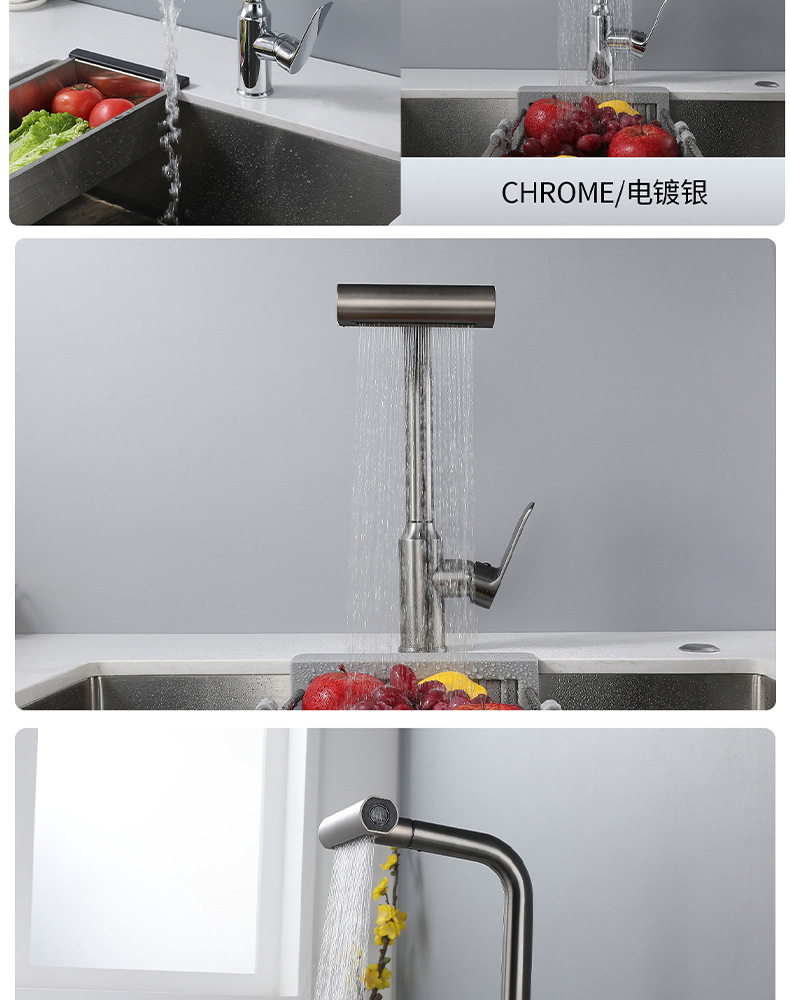 7725新飞雨厨房龙头-枪灰抽拉