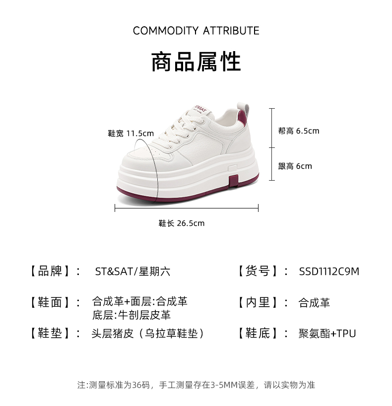星期六时尚百搭休闲透气厚底板鞋SSD1112C9M