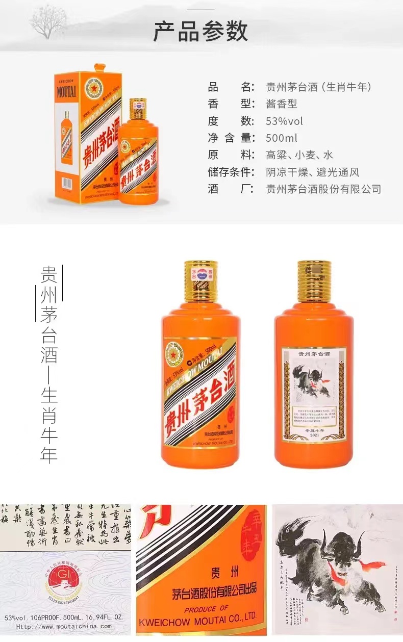 贵州茅台牛年生肖纪念版,原箱 500ml*6 酱香型白酒