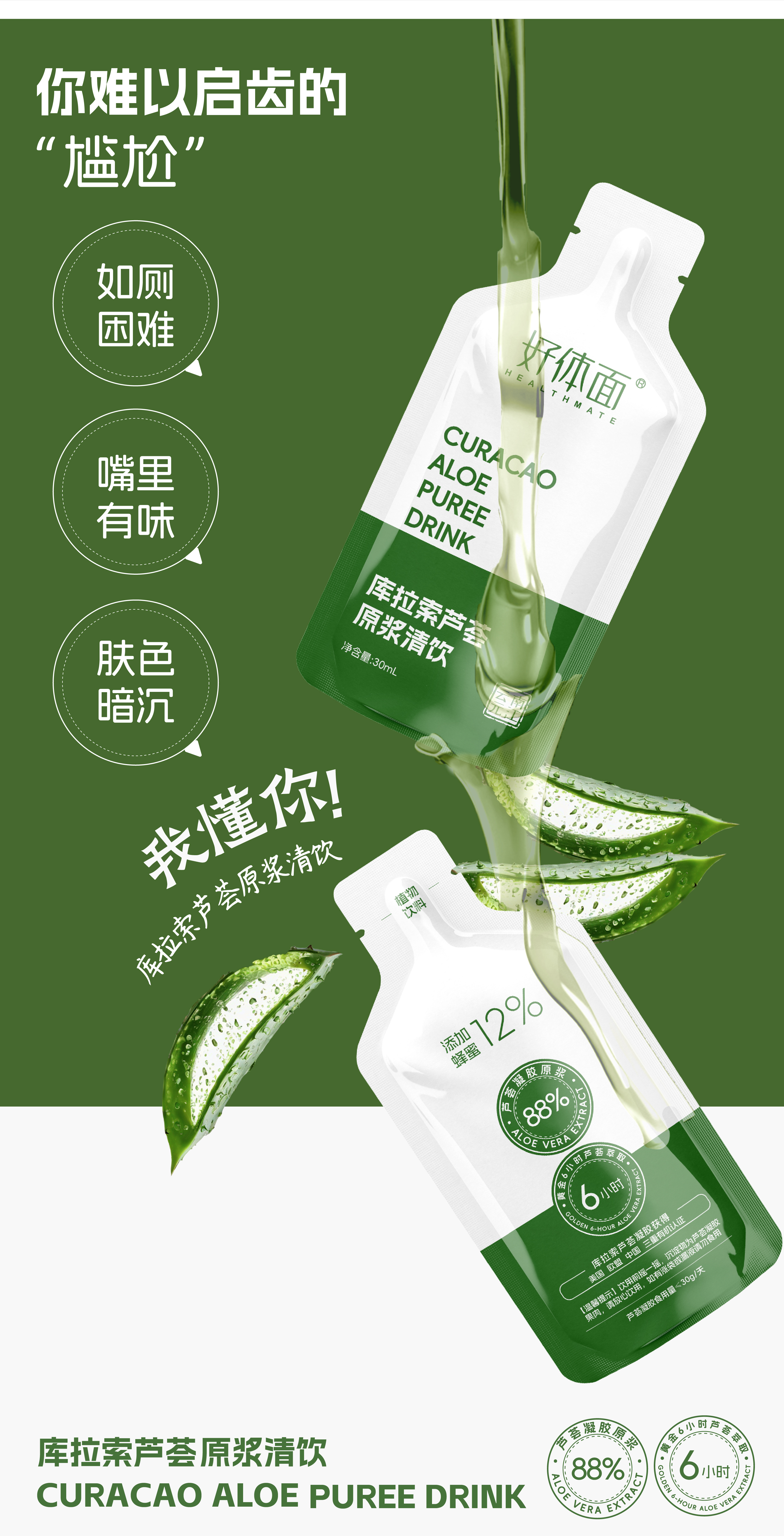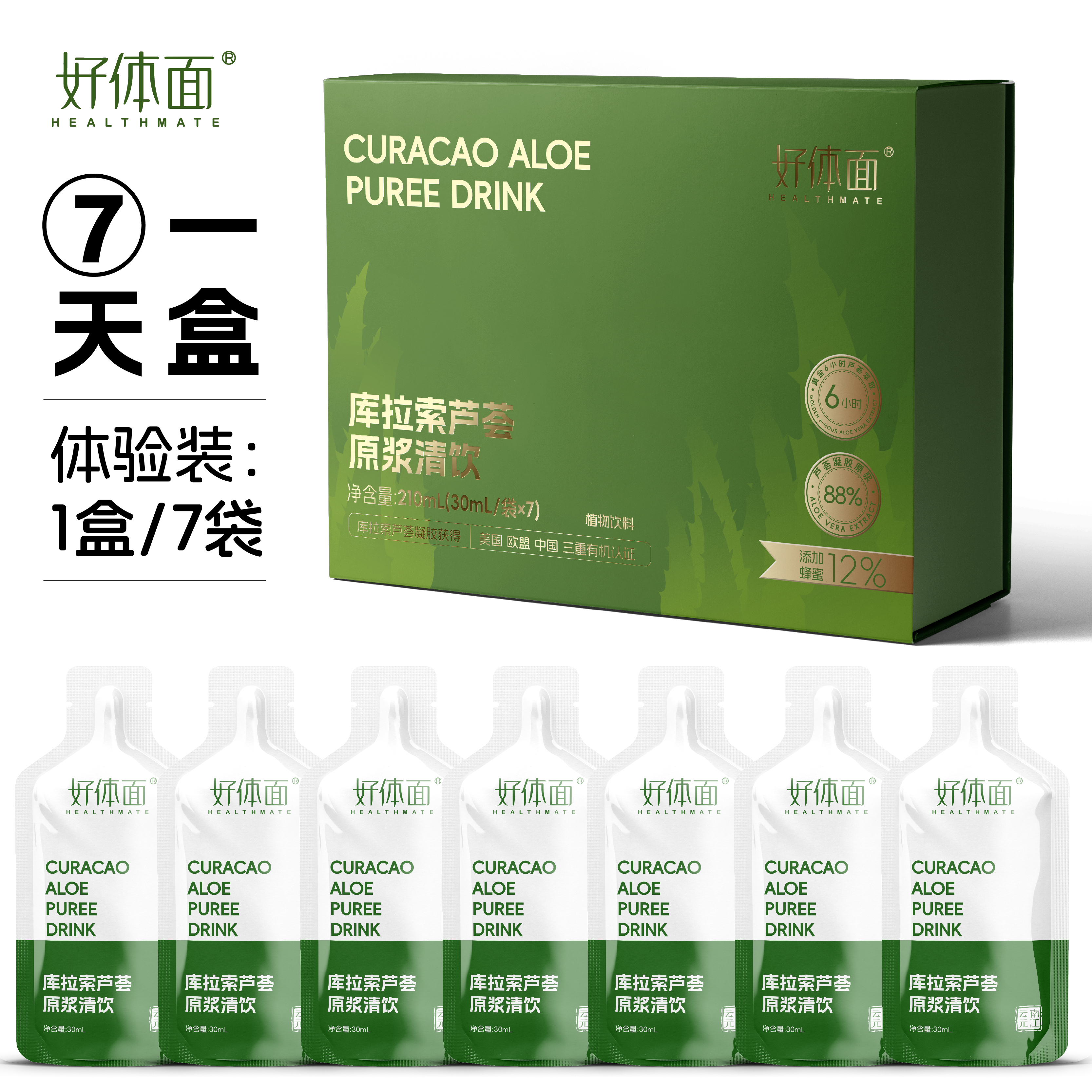 好体面 库拉索芦荟原浆蜂蜜药食同源易排便去口气一盒7袋,四盒一周期每一天1袋,下单就送芦峇润舒胶囊