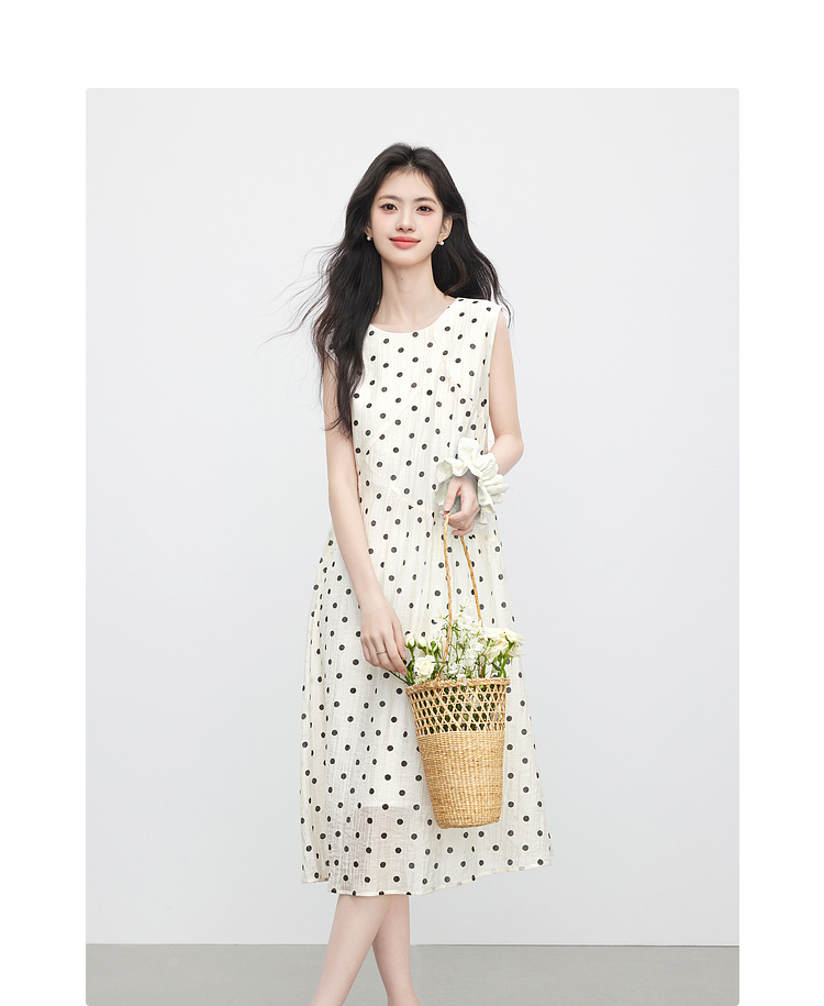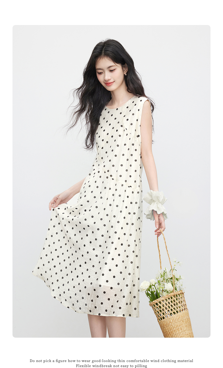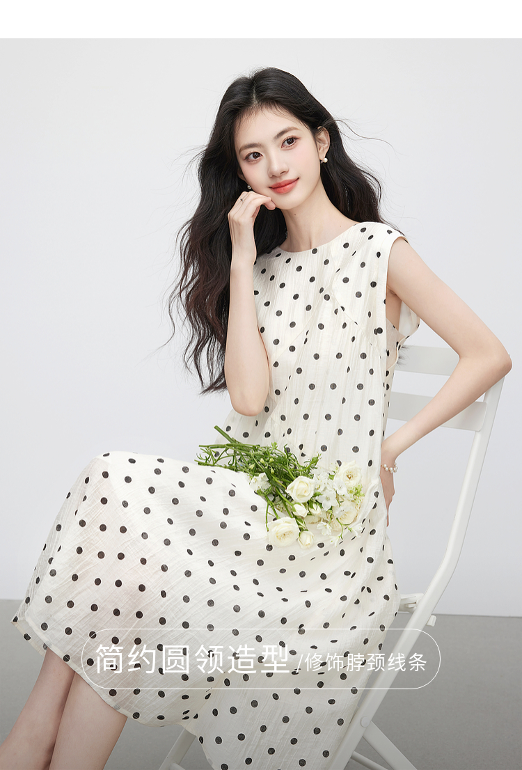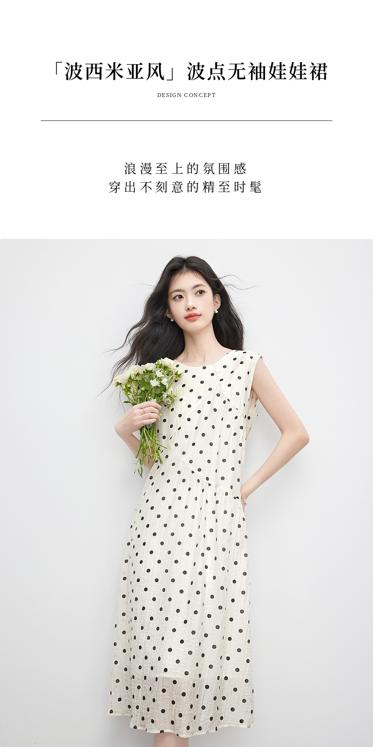 【07/16新品】熙世界波西米亚风波点连衣裙女2025夏装新款法式度假无袖背心裙子