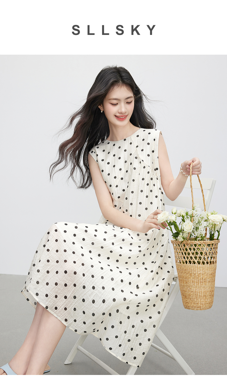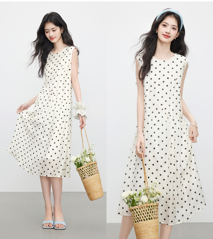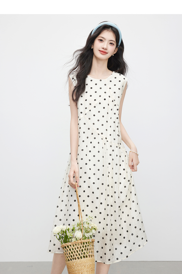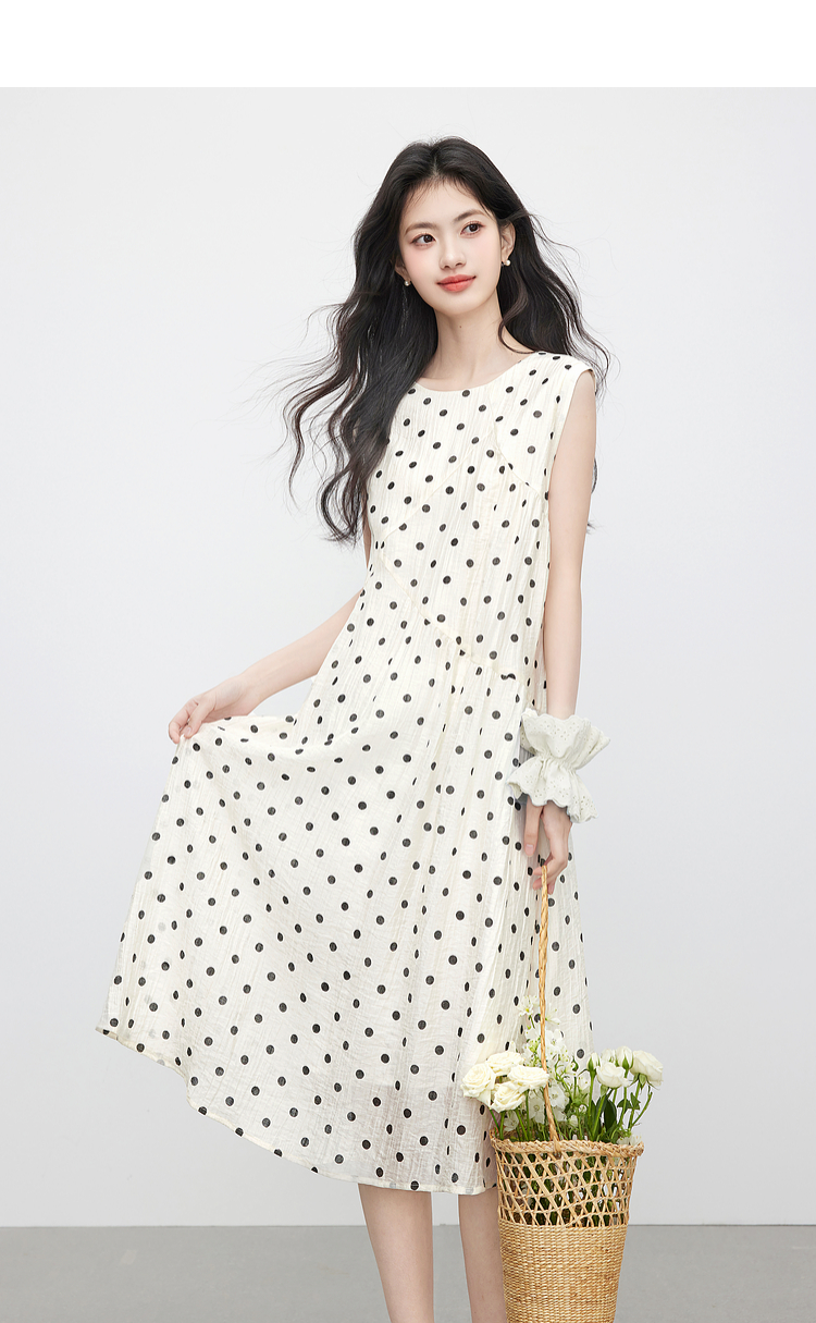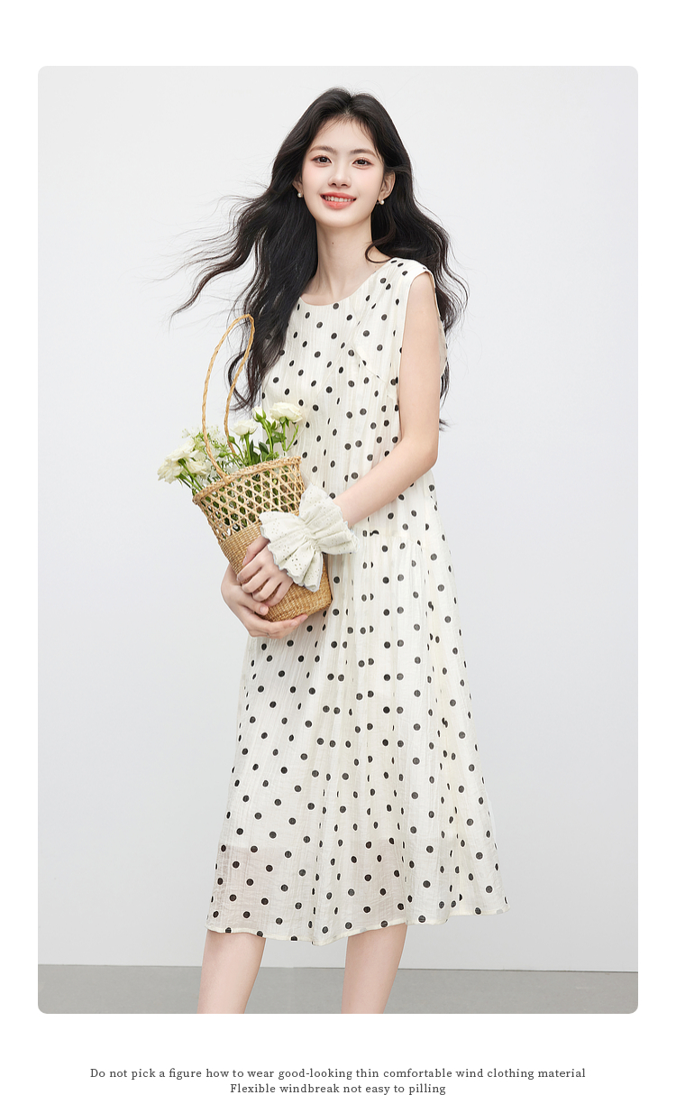 【07/16新品】熙世界波西米亚风波点连衣裙女2025夏装新款法式度假无袖背心裙子