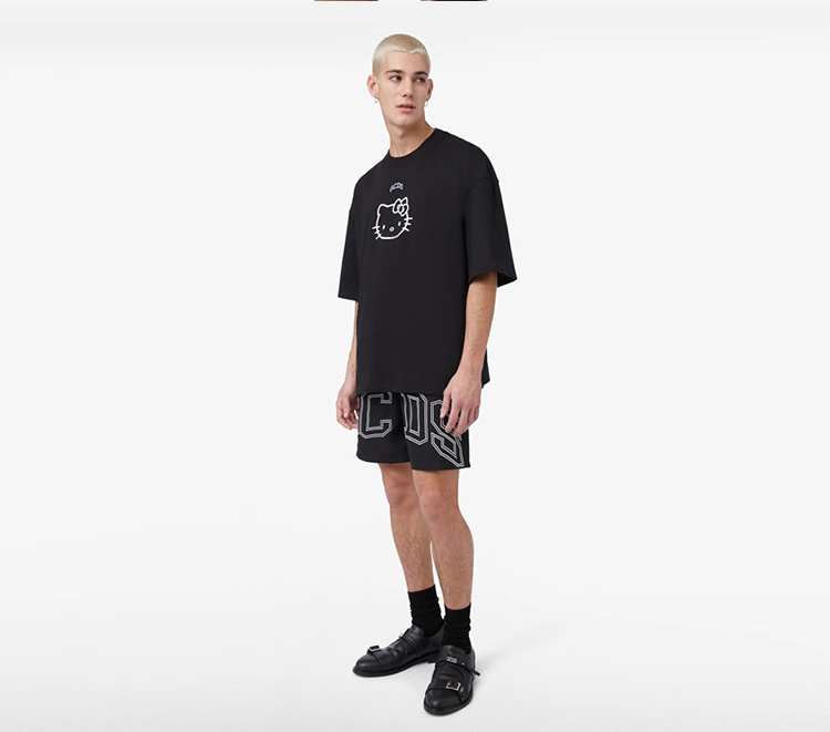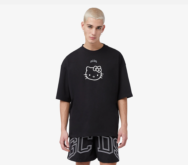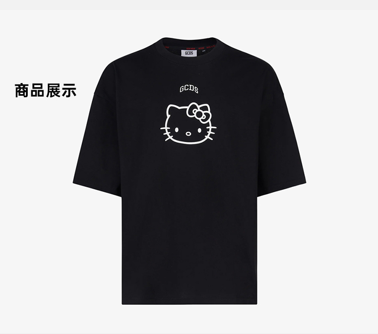 GCDS 男士 hellokitty 联名徽标印花棉质圆领短袖T恤 黑色 A1CM2313JA399