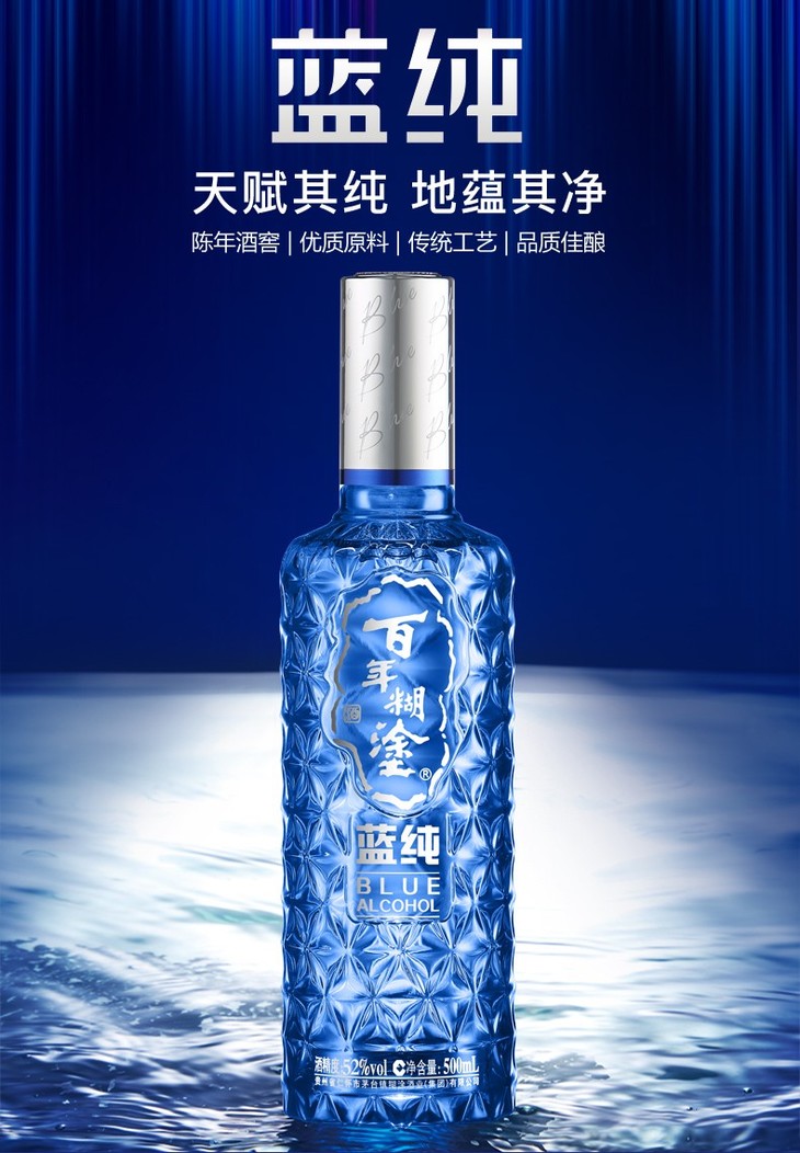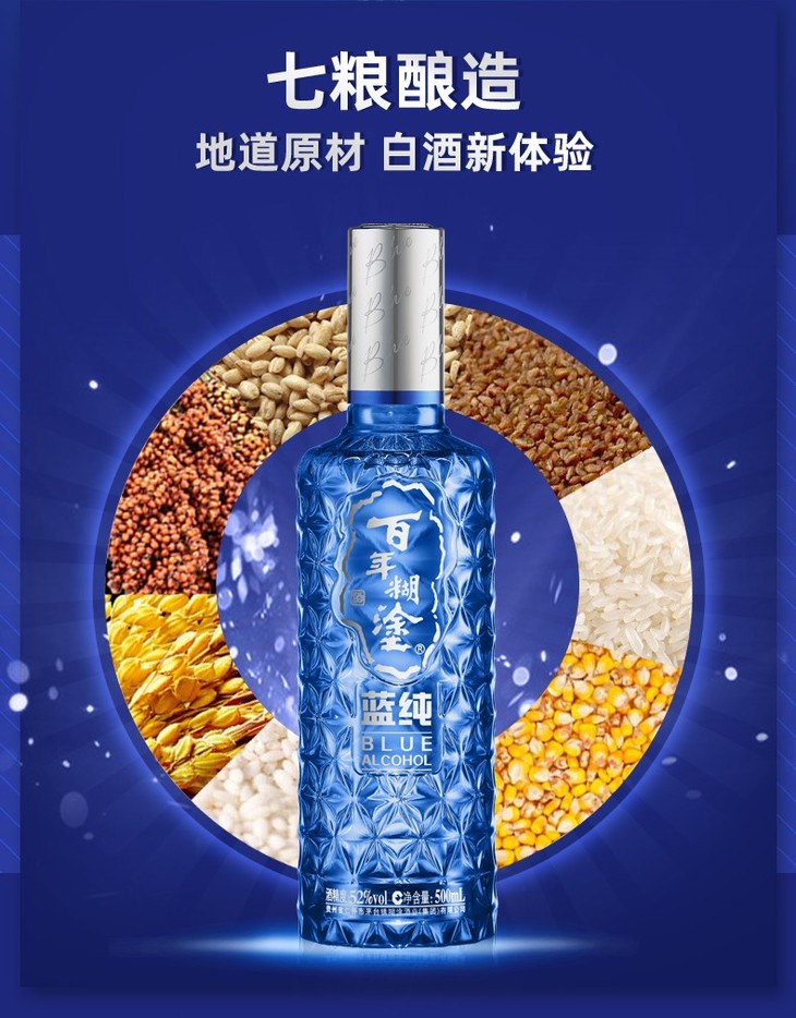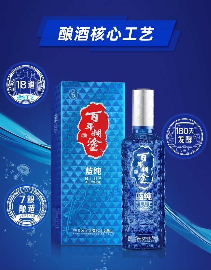 百年糊涂高档礼盒蓝纯浓香型白酒52度500ml/1瓶/2瓶