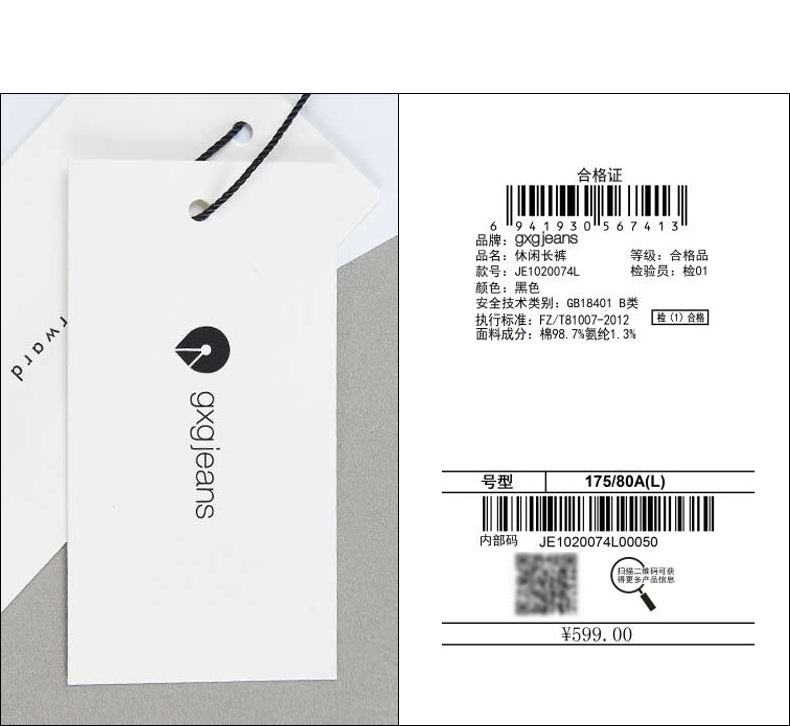 gxgjeans男装春季明线结构宽松休闲长裤子